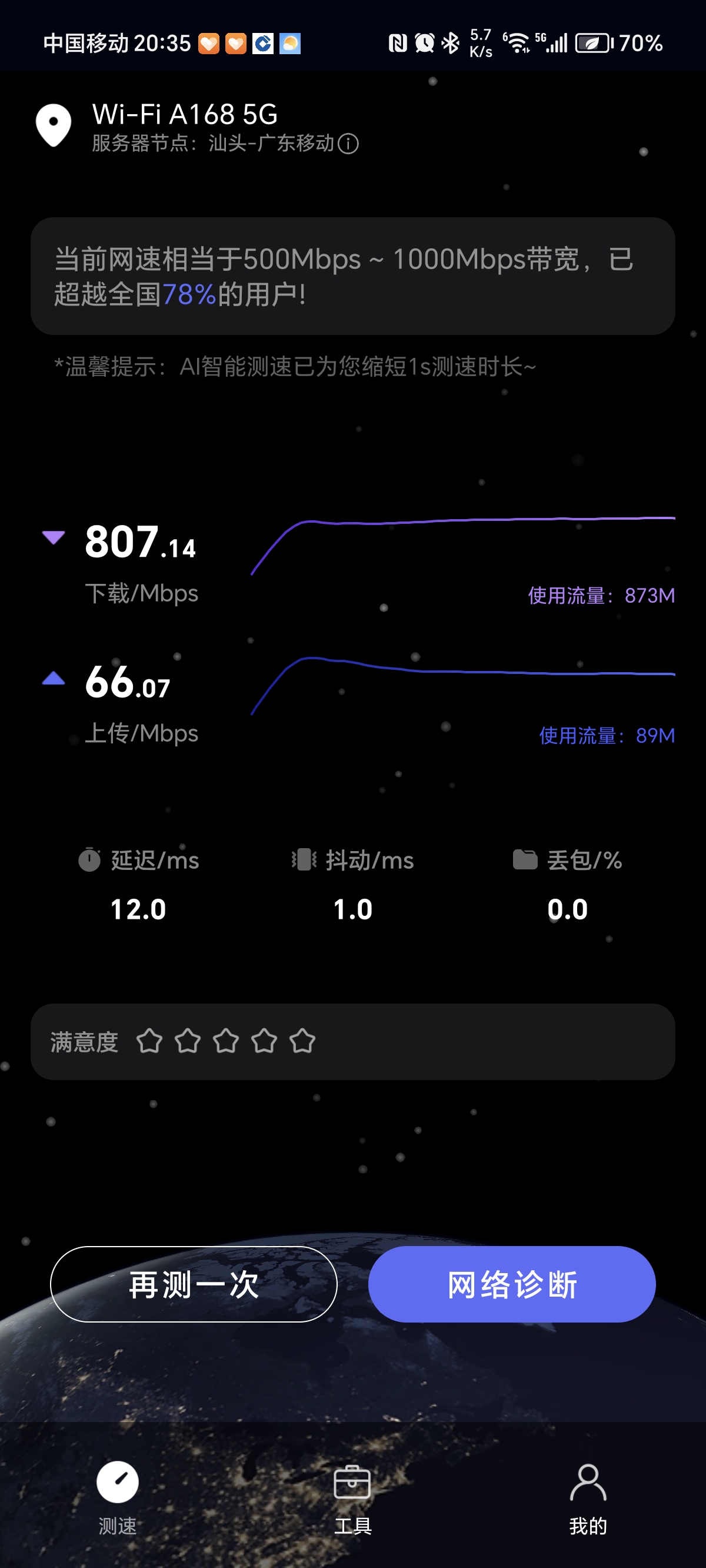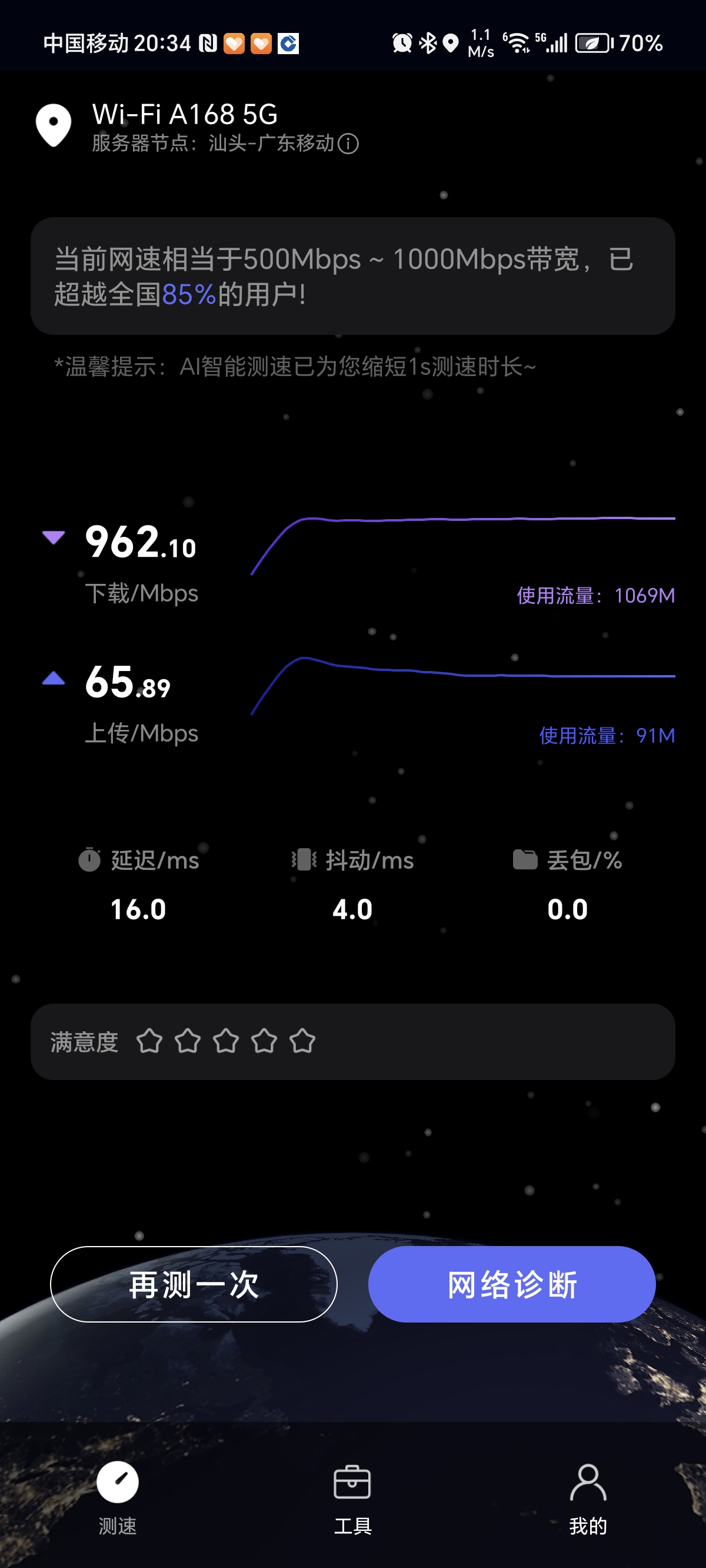 我不知道绍兴的移动,是不是也跟汕头的一样限制在2048,以前汕头的移动是设置3076的,刚刚有移动宽带时候,用户少,网络是感觉不比电信的差的,有时会感觉速度都有暴发力,但慢慢用户多了,出口又调低了,所以如果入户光纤没接好光损大的,网络稍稍有波动时,家庭用户没用比较好的路由会明显感觉网络不好。我用的路由是企业路由,所以我网络一直是很好的,如果我的网络感觉不好,邻居们的网络,其实是完全无法用的。