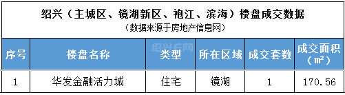 12月7日绍兴(包括主城区、镜湖、袍江、滨海)商品房网签1套,网签面积170.56平方米。其中,商品住宅网签1套,办公物业成交0套。