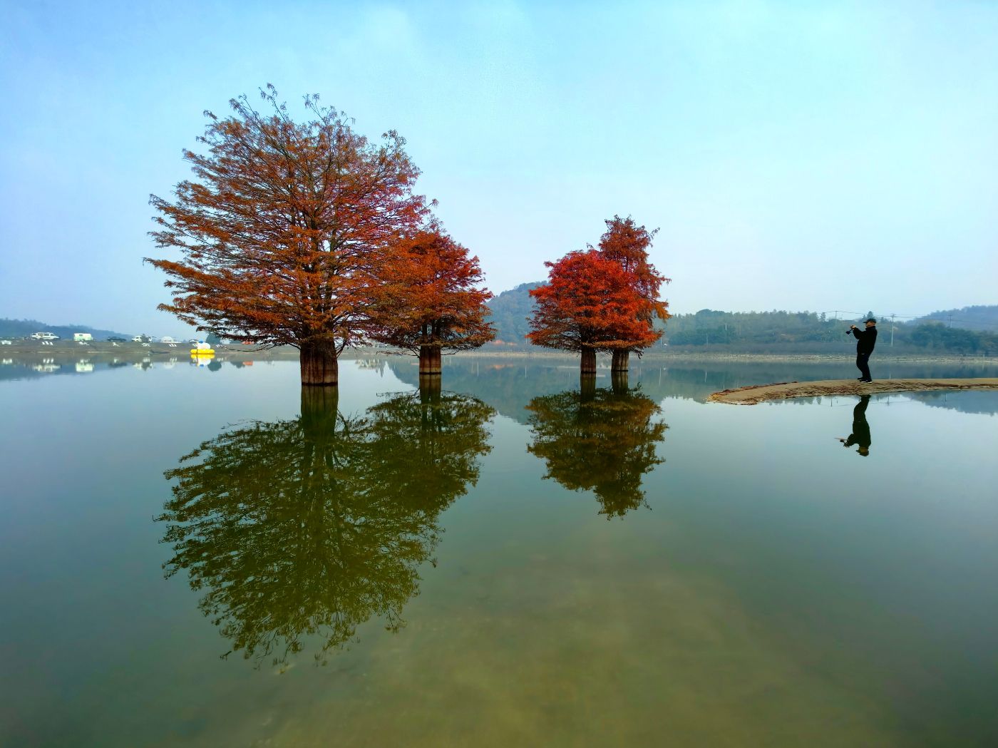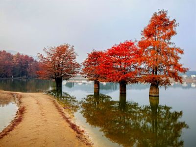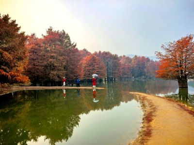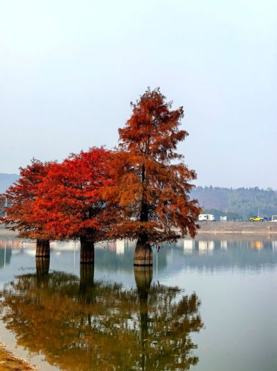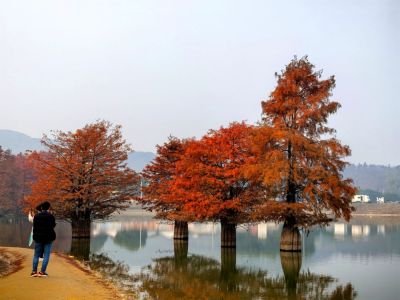 麻岙水库水杉的秋色 。