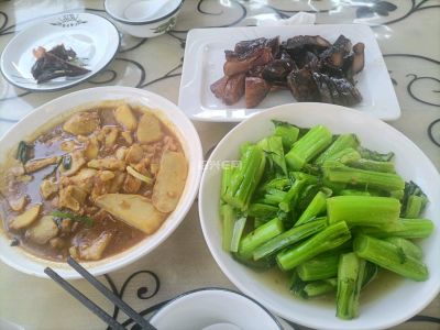 午餐:酱货三拼,红烧芋艿还有清炒菜蕻合计138元。