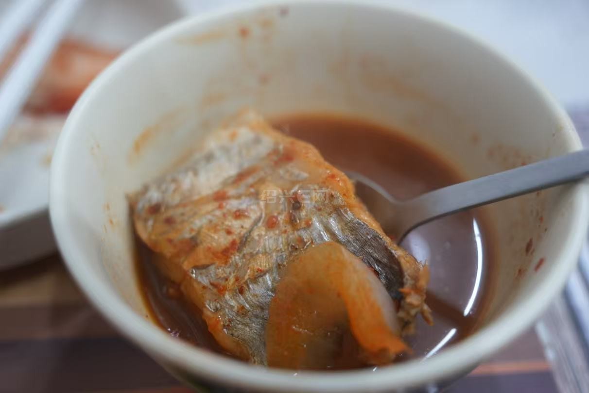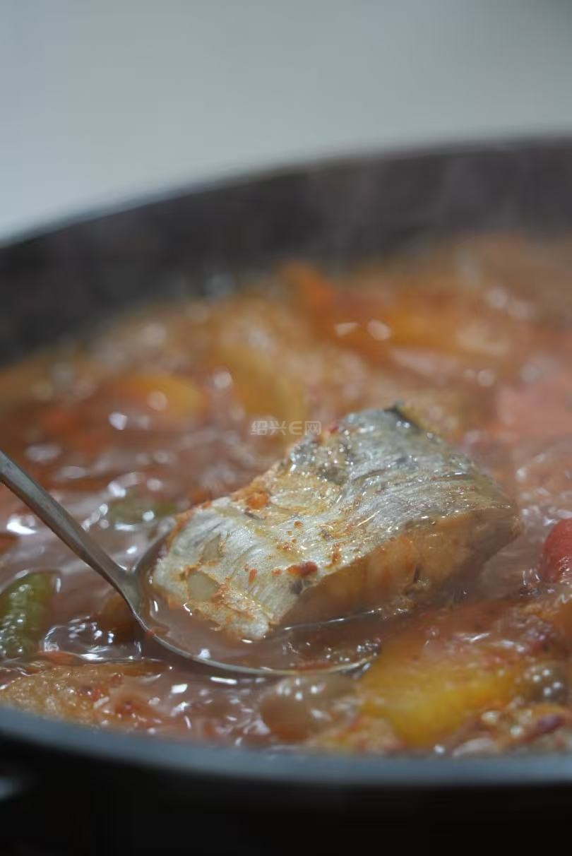 佐料是萝卜、土豆、洋葱和带鱼,汤底爽辣浓郁带鱼肉厚影响口感。