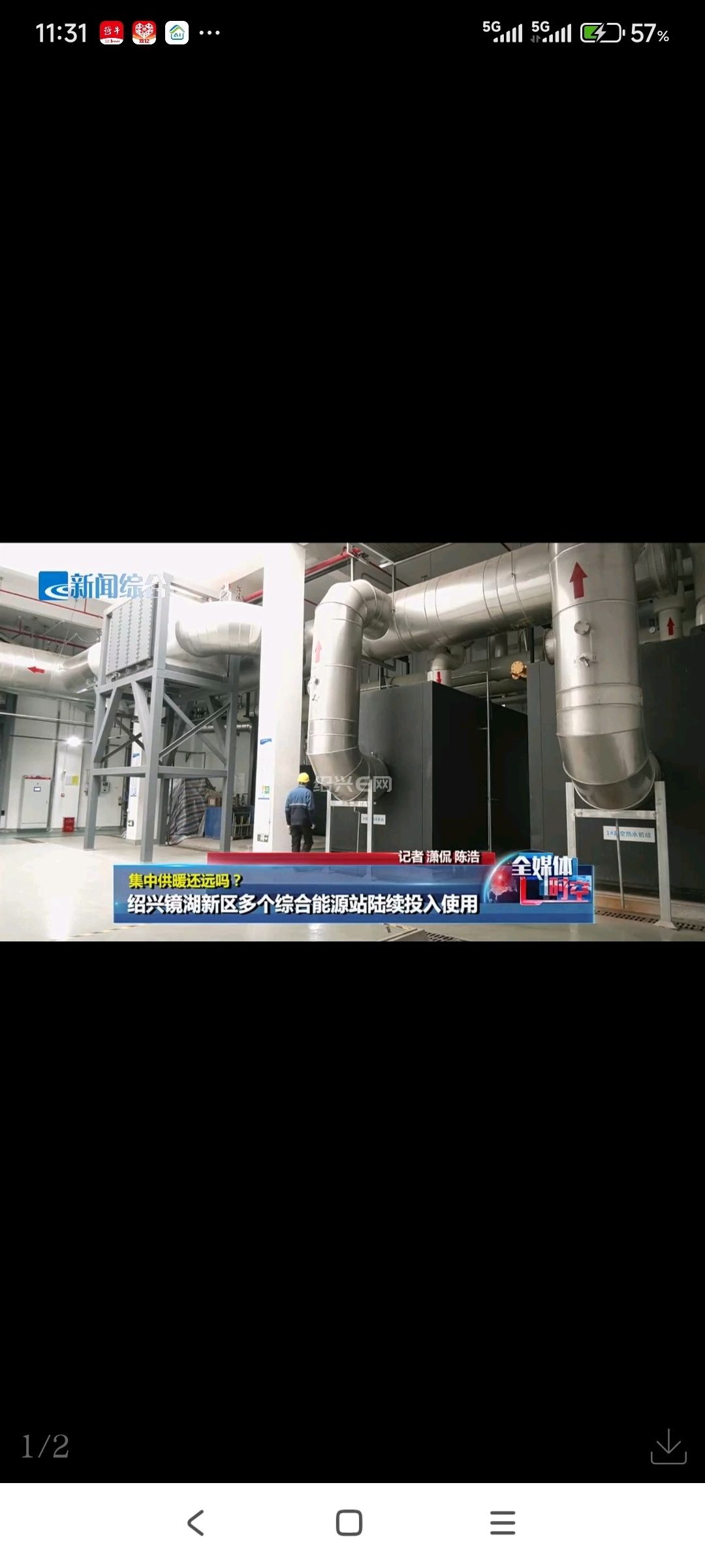 绍兴市公用事业集团下属新能源产业有限公司副总经理 俞佳亮:我们配备了整体总量11500kw的锅炉制热系统,锅炉是通过制导一个热水,通过热机温水泵,输送给末端的用户进行供热,我们整个3号站供能面积在45万方左右,主要为梅山广场,这边有开元酒店梅山春晓,包括还有一些办公(供热)。
