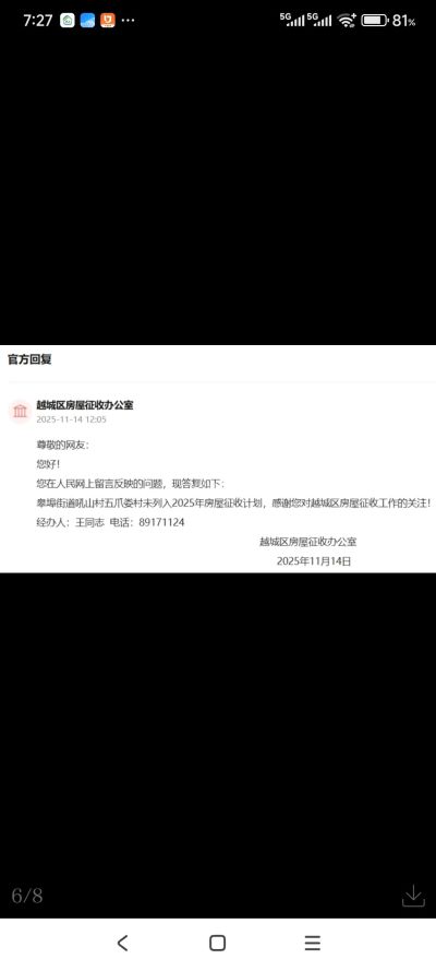 问:因为看到五联工业园区已经在拆迁了,也想问一下五联村大概什么时候会启动拆迁?望回复
