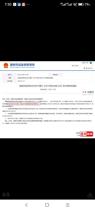 根据2017年对我国生效的《关于汞的水俣公约》及国家相关部门2017年第38号公告,明确要求自2026年1月1日起,禁止生产含汞体温计和含汞血压计。国家药监局2020年发布的《关于履行有关事项的通知》是对这一要求的国内落地执行。