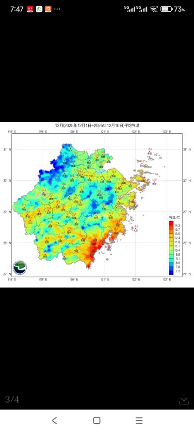 平均气温:10月以来全省17.8℃,比常年同期偏高2℃,为历史最高。12月以来全省11.8℃,比常年同期偏高2.2℃。