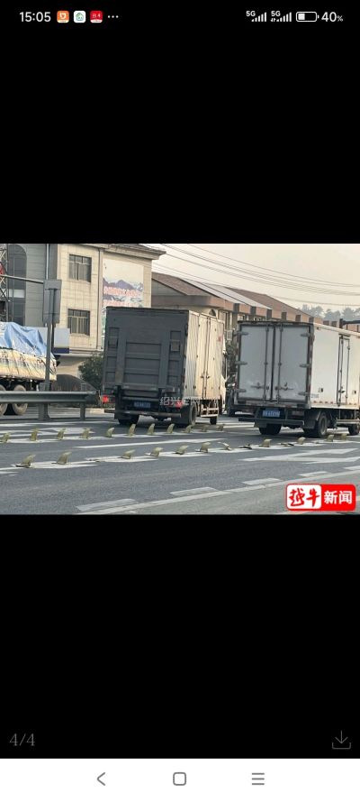 更值得注意的是,该路段重型卡车、大型货车通行频繁,现场可见部分“锯齿状”装置已出现不同程度的破损,有的倒伏在地,有的边缘碎裂。