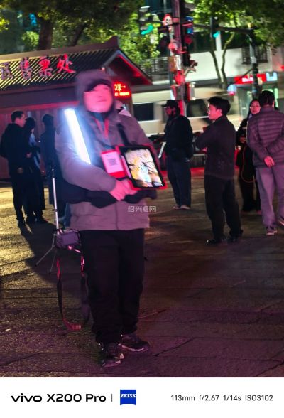 大冷天晚上游客稀少,这些拍照师在寒风中依然坚守岗位。