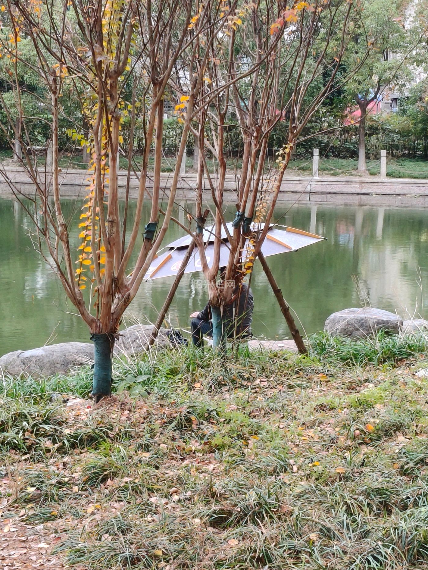 降温天,一大早就看到了这位坐在河边钓鱼的大神