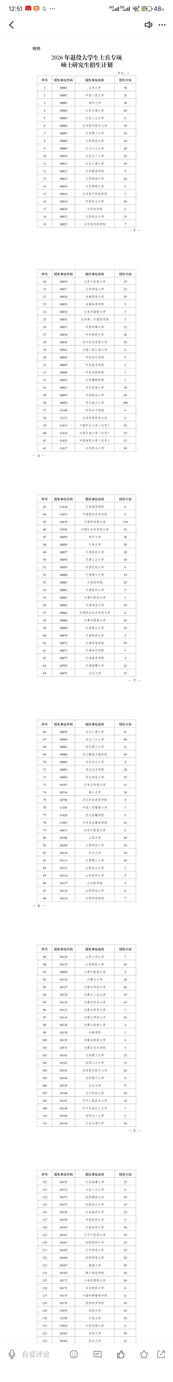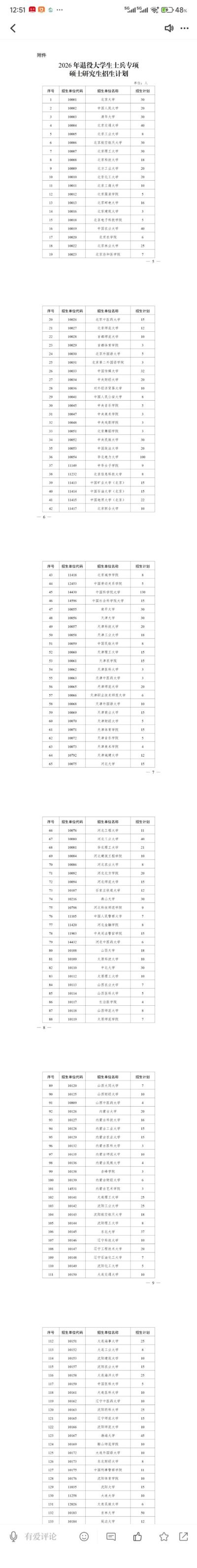 近日,教育部印发通知,决定2026年继续实施退役大学生士兵专项硕士研究生招生计划。2026年全国“退役大学生士兵计划”由北京大学、清华大学等532所普通高等学校承担。