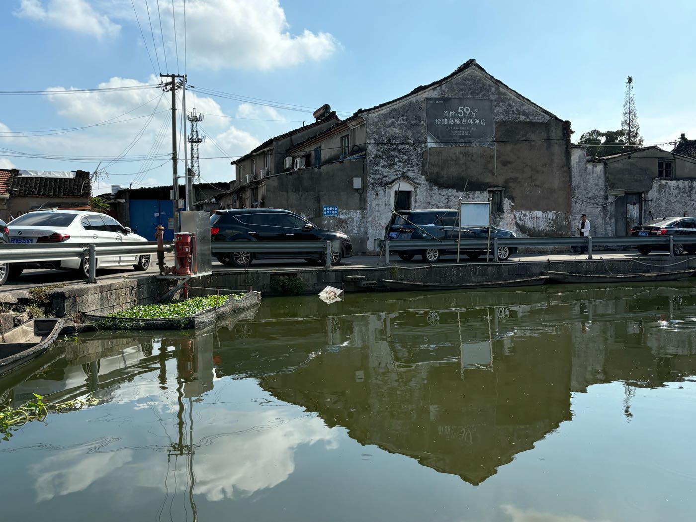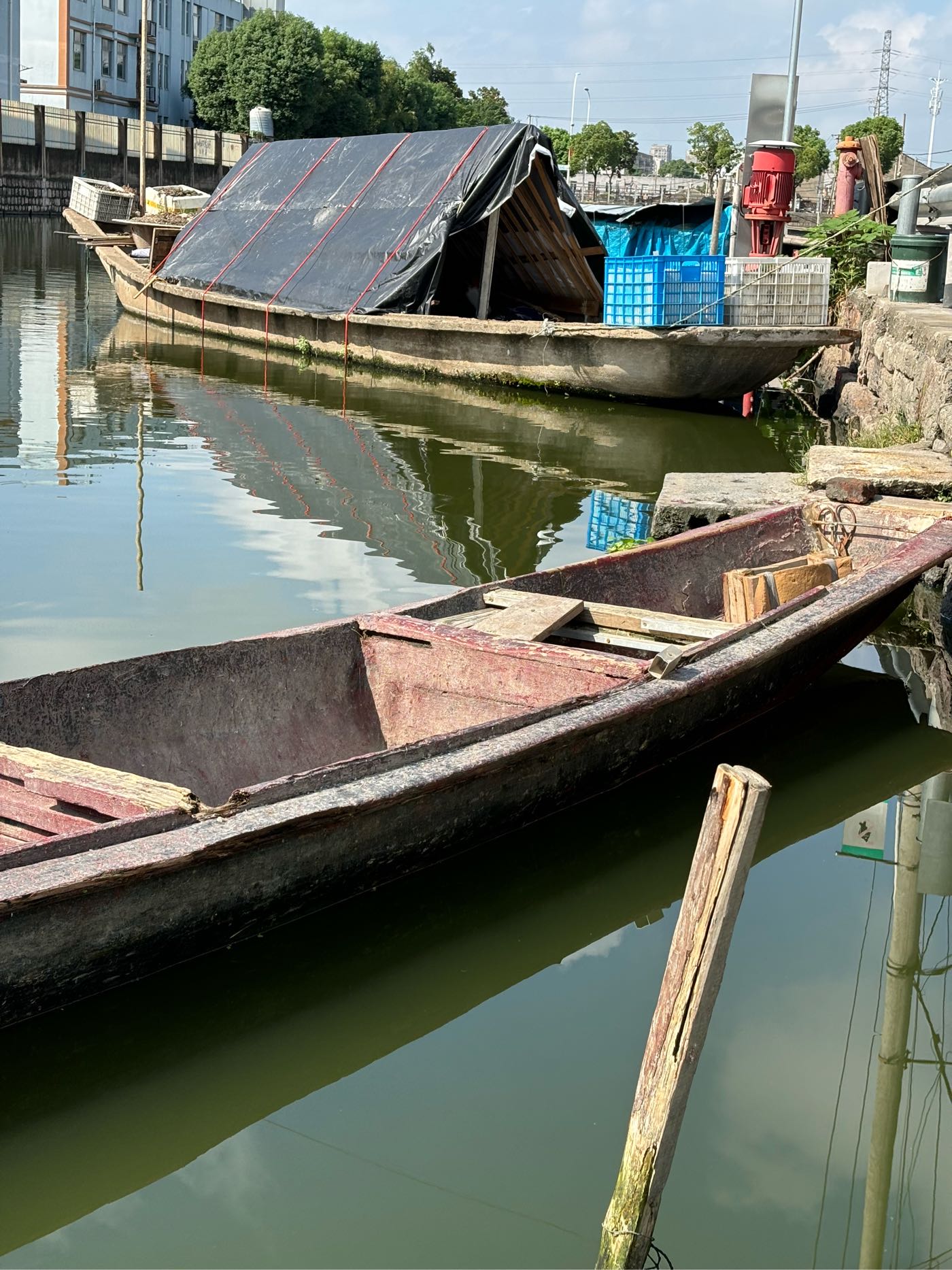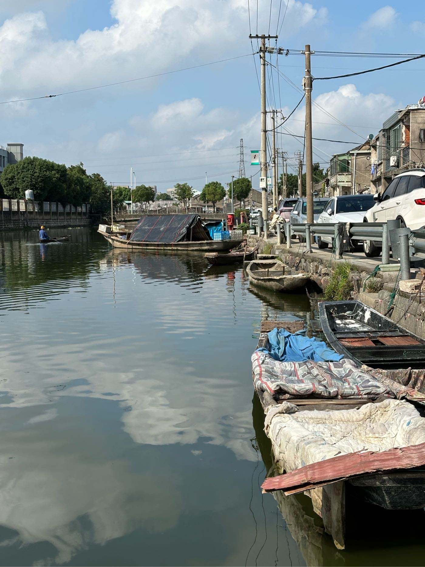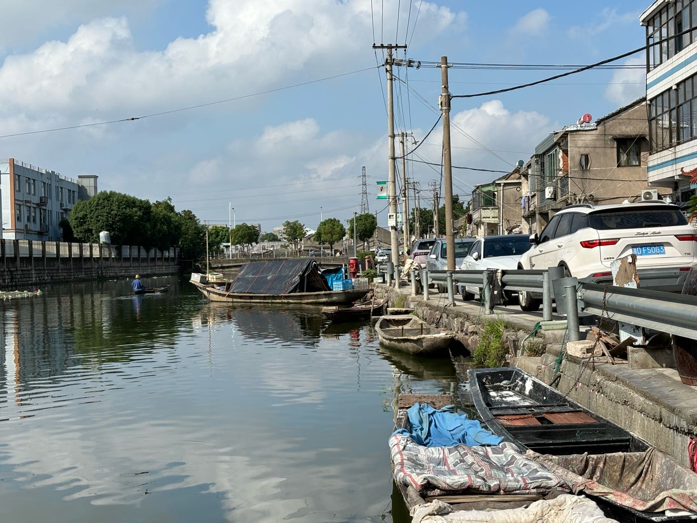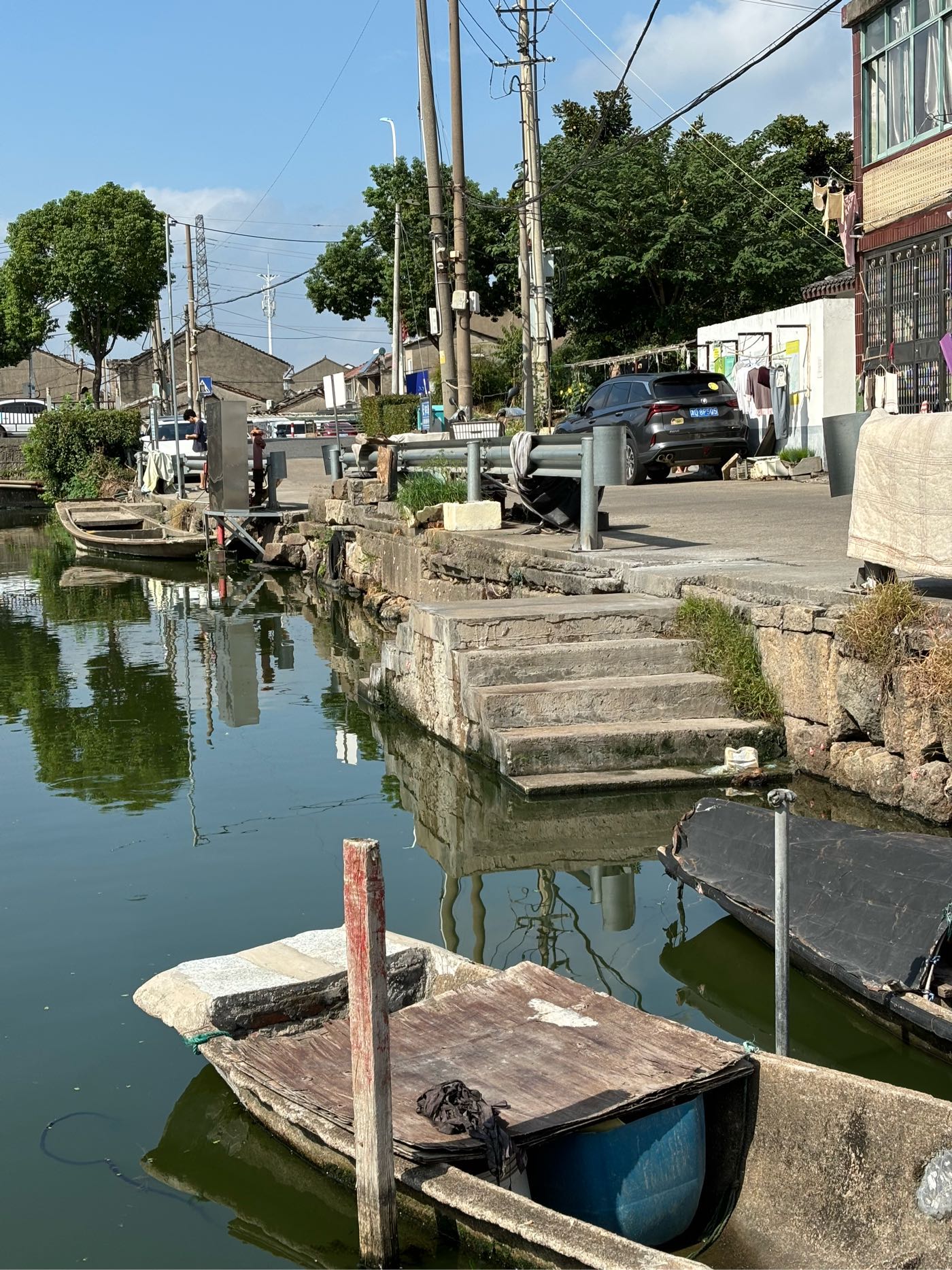 坝头丁村与袍渎村南北相依,拍了袍渎村,同条路上继续往北,看到了宽大的河流,沿河边停着数条农船,而岸上也是宽畅的道地,一派典型的水乡画面,便也去转了转,拍了几张……