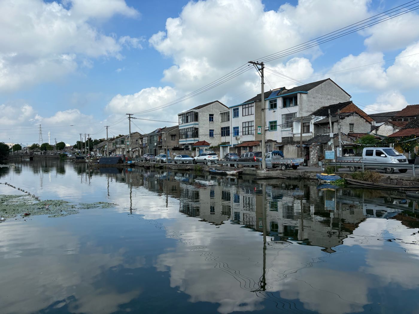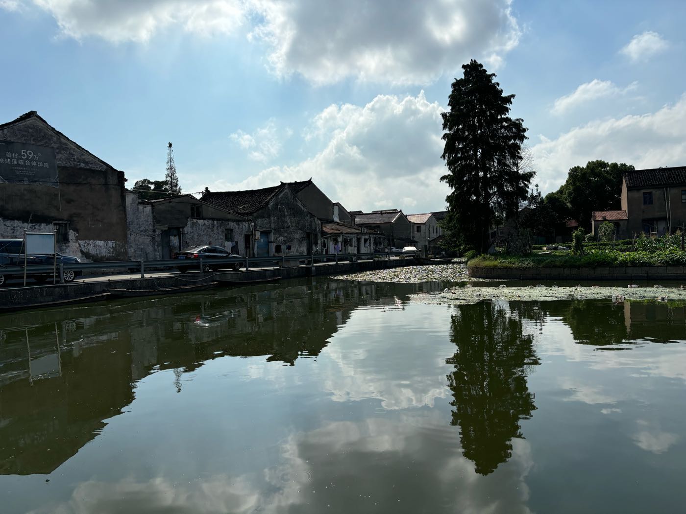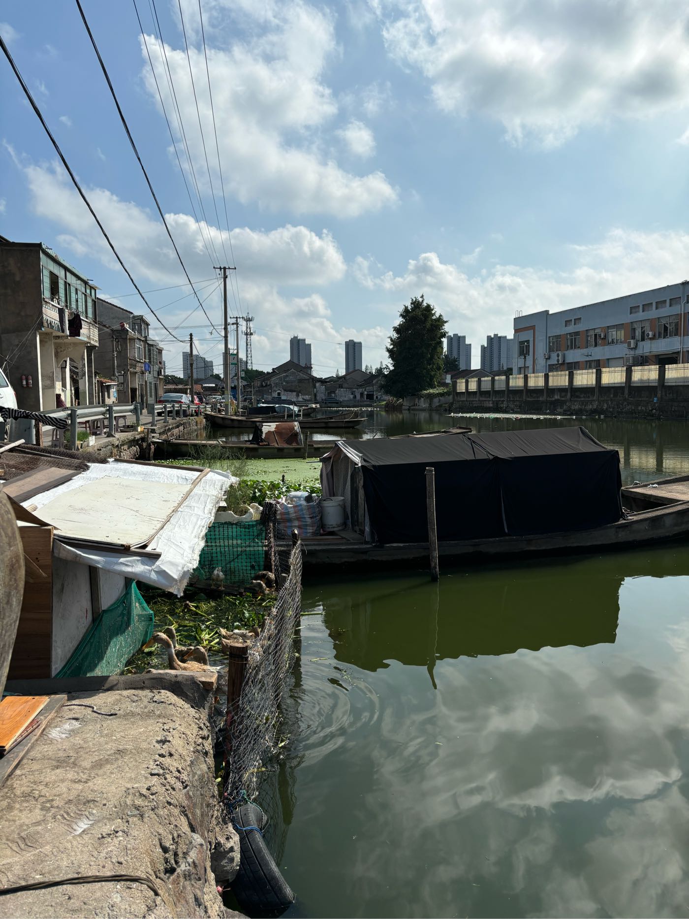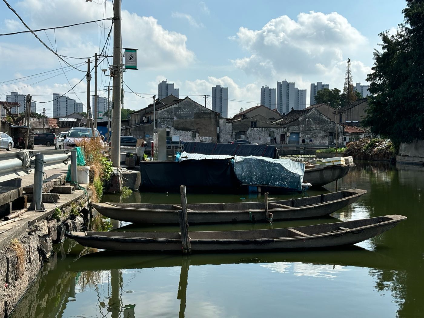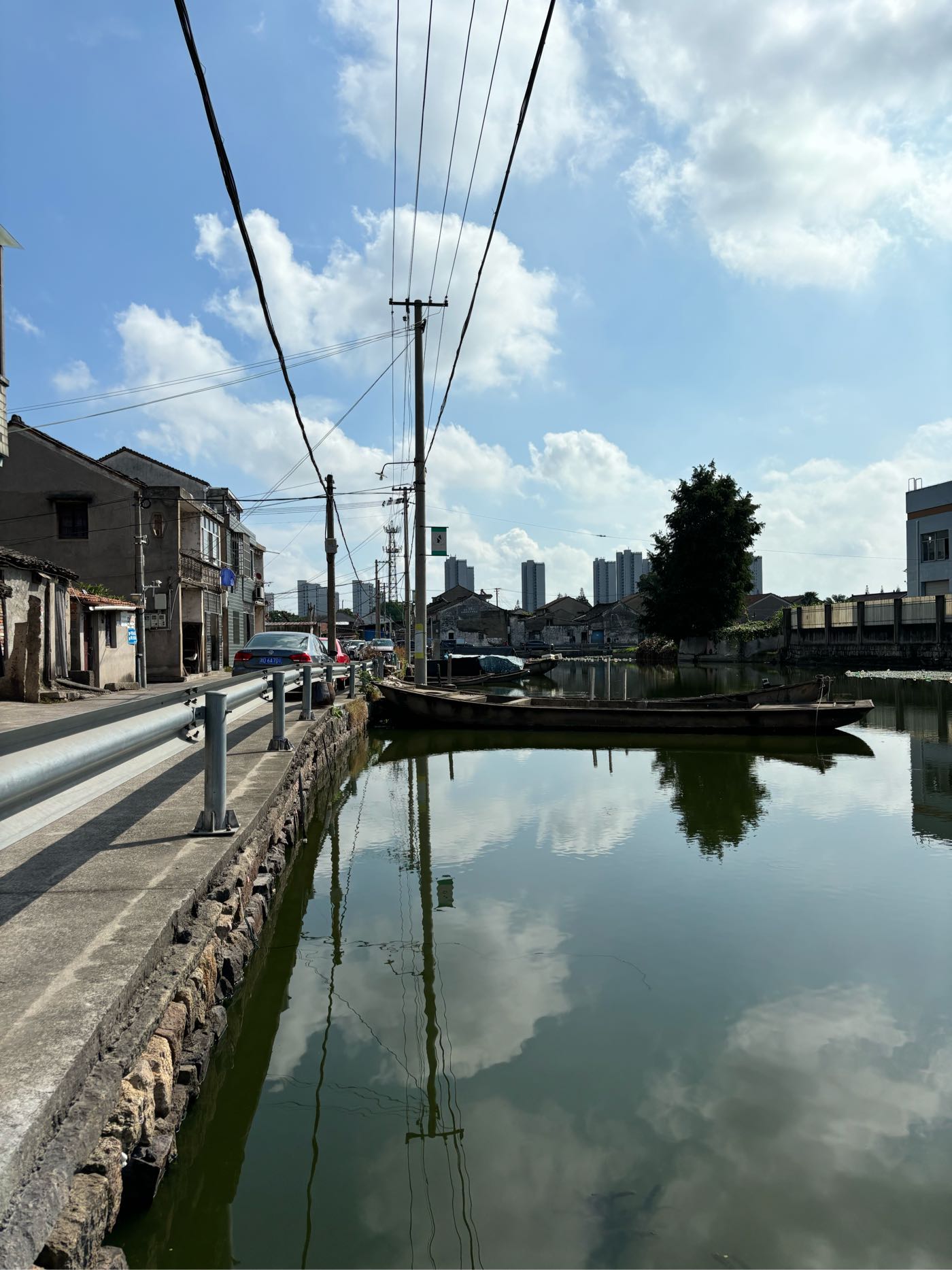 坝头丁村与袍渎村南北相依,拍了袍渎村,同条路上继续往北,看到了宽大的河流,沿河边停着数条农船,而岸上也是宽畅的道地,一派典型的水乡画面,便也去转了转,拍了几张……
