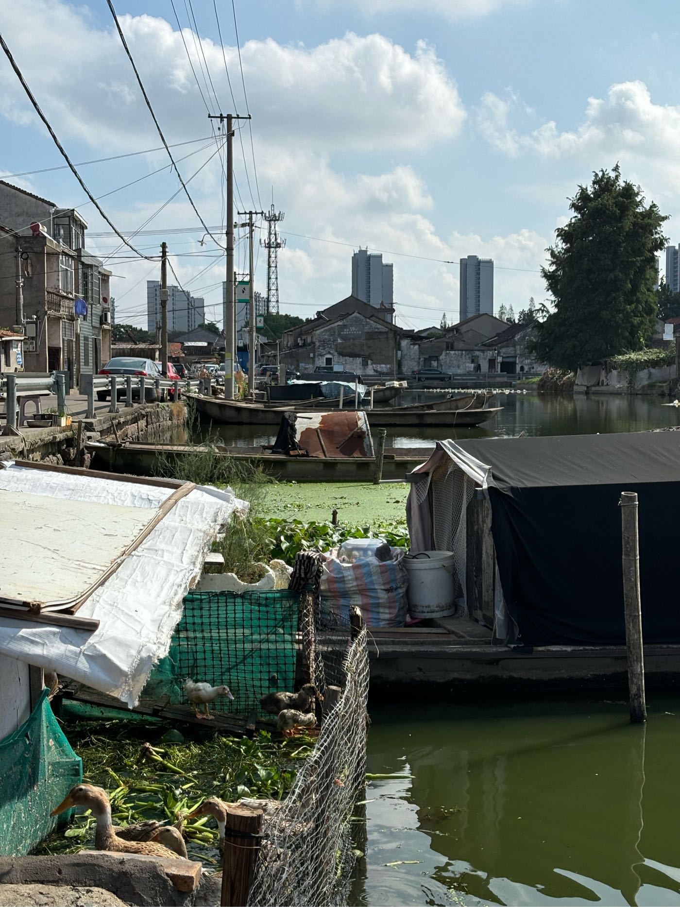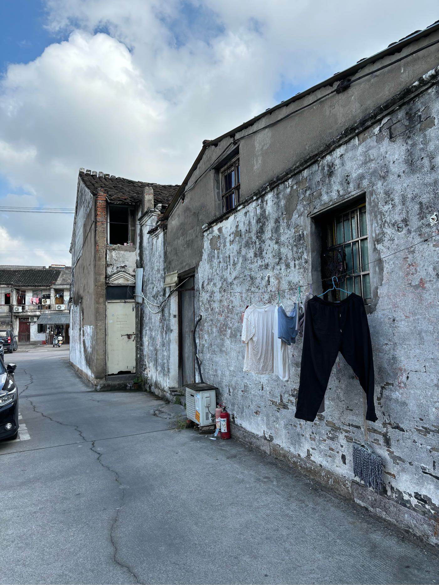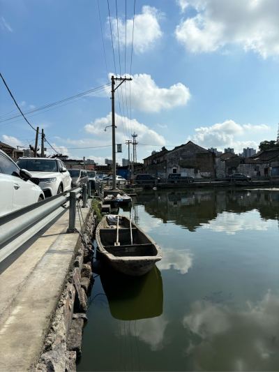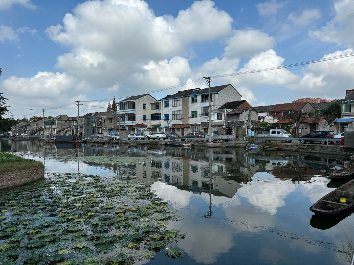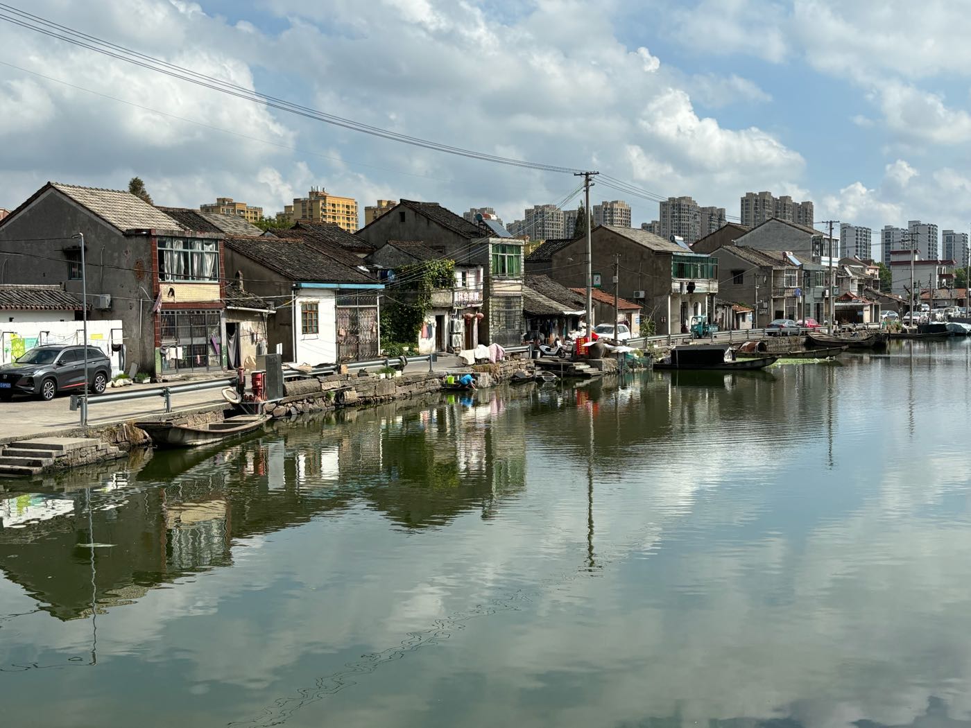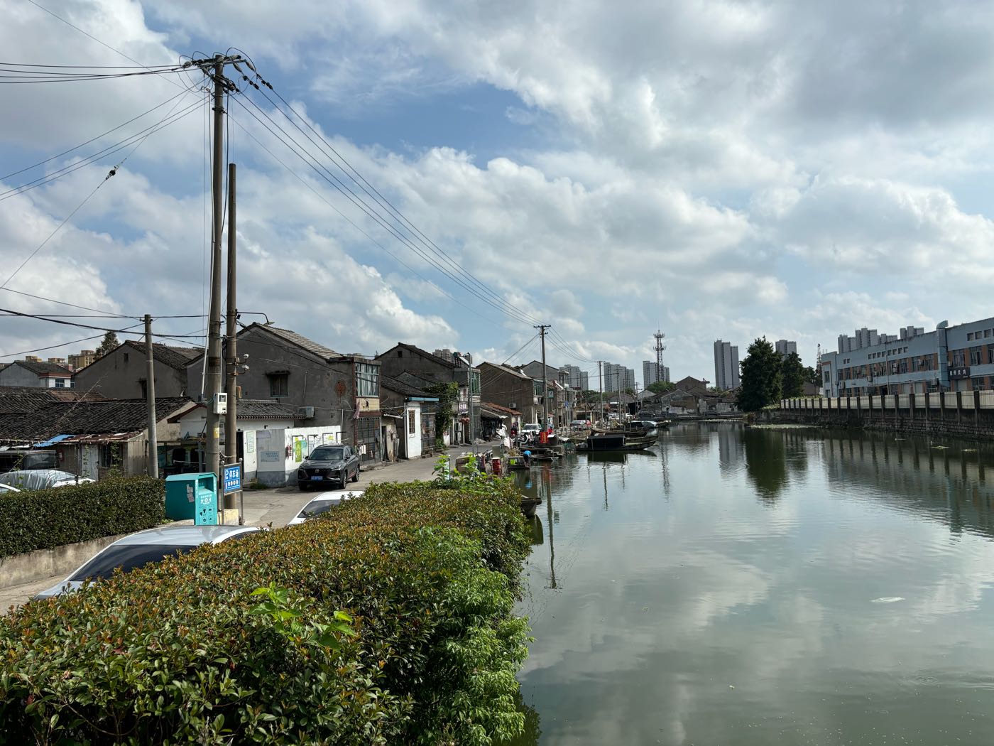 坝头丁村与袍渎村南北相依,拍了袍渎村,同条路上继续往北,看到了宽大的河流,沿河边停着数条农船,而岸上也是宽畅的道地,一派典型的水乡画面,便也去转了转,拍了几张……