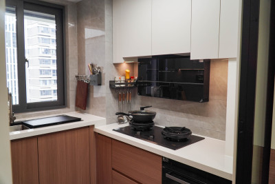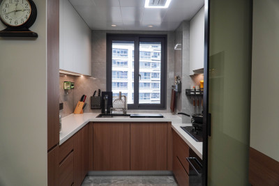 厨房采用U型设计让洗,切,烧更加的动线合理高低台的设计更加符合人体工学