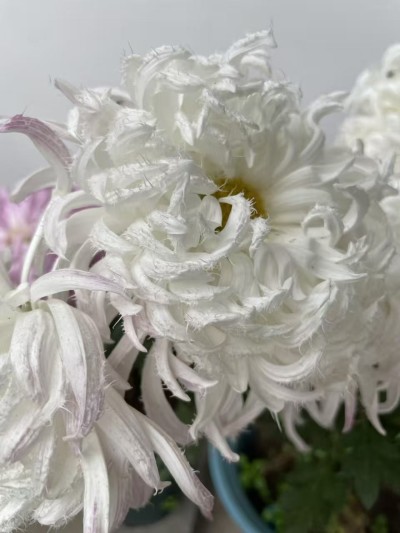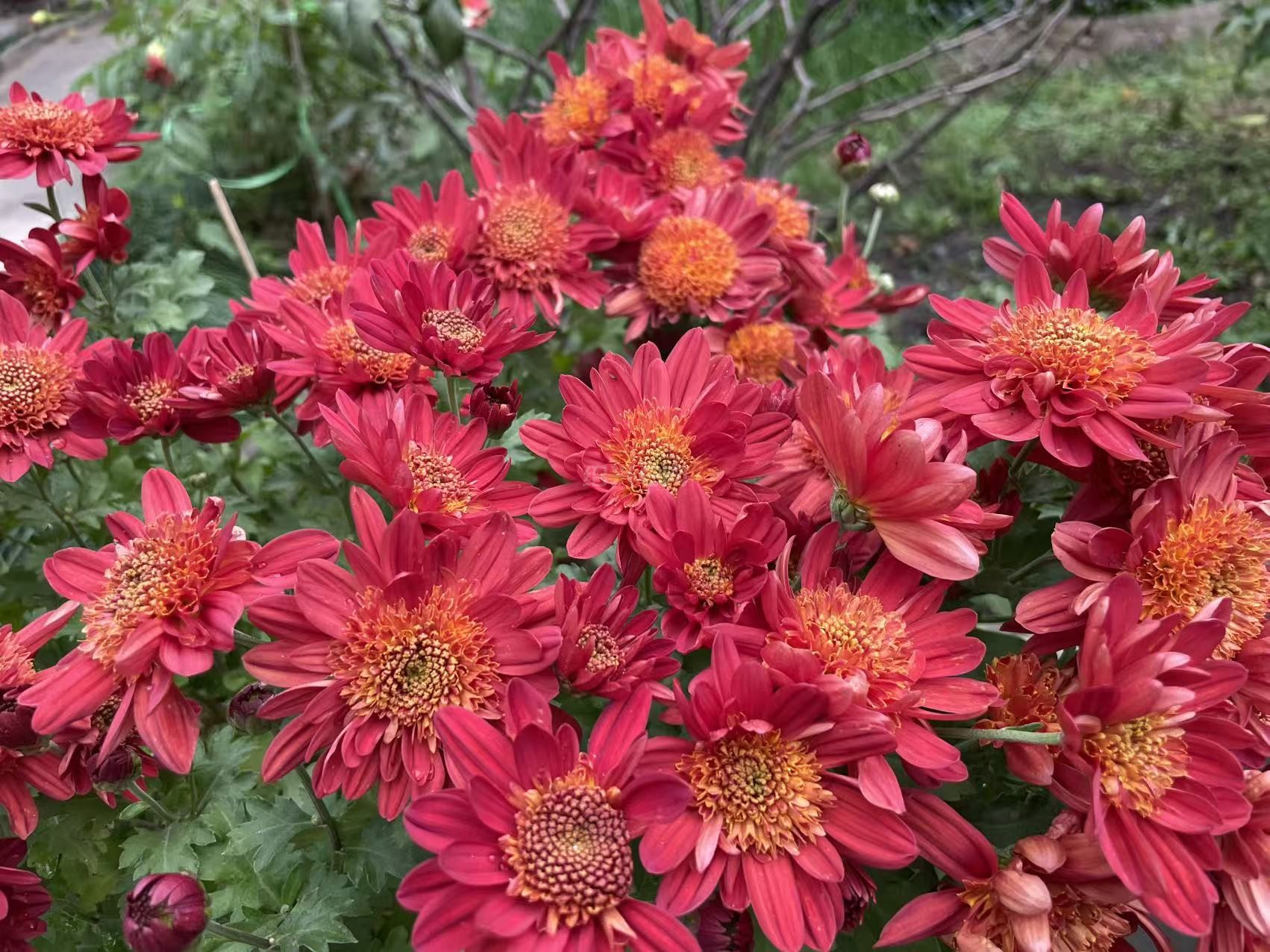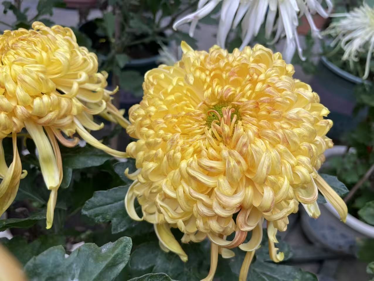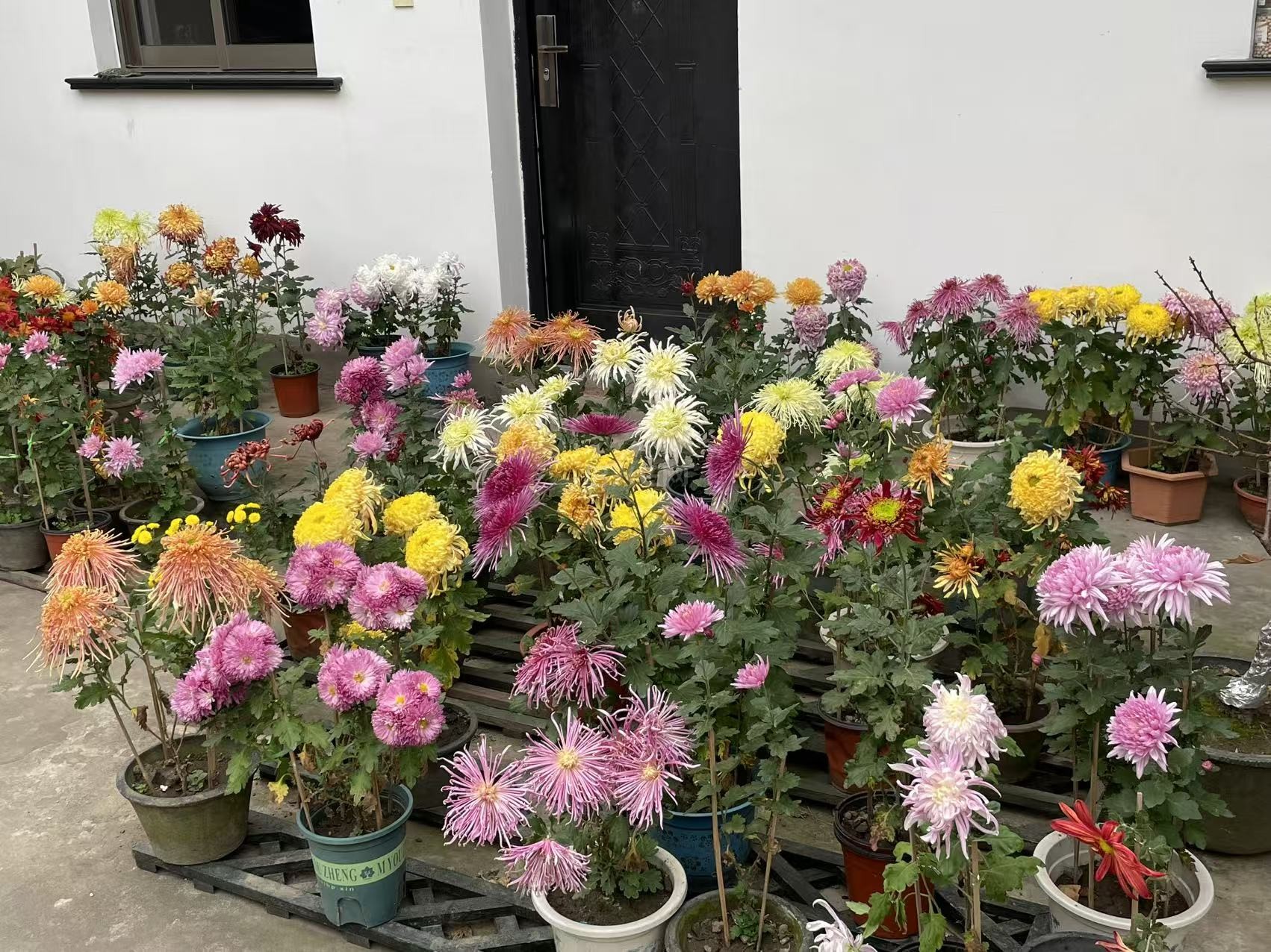 老妈养菊花多年,今年气温一直居高不下,现蕾开花时间推迟。