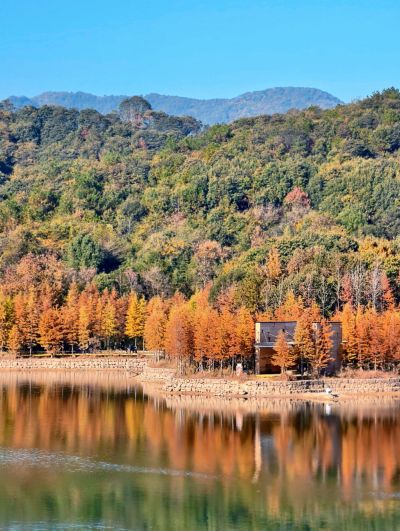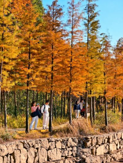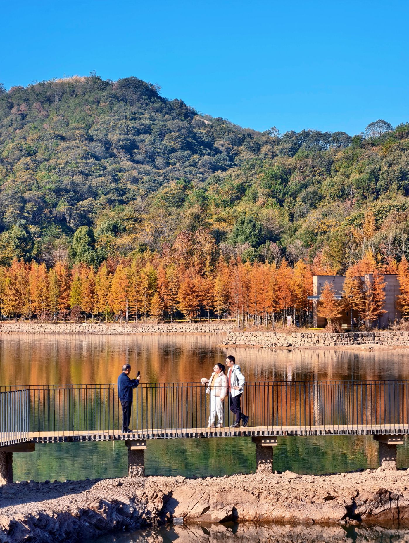 上虞凤凰山遗址公园水杉林披红,古遗址旁层林尽染,冬日光影穿透枝叶,绘就一幅古韵与诗意交织的绝美画卷。