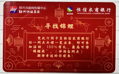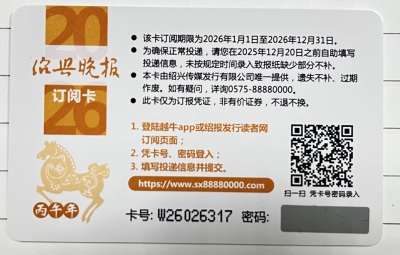 绍兴晚报2026年年卡低价转让,100元,可小刀!