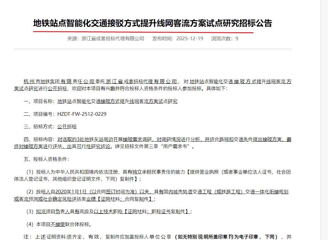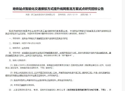 杭州地铁客流提升招标,苏州宁波客流都不符合新政要求。