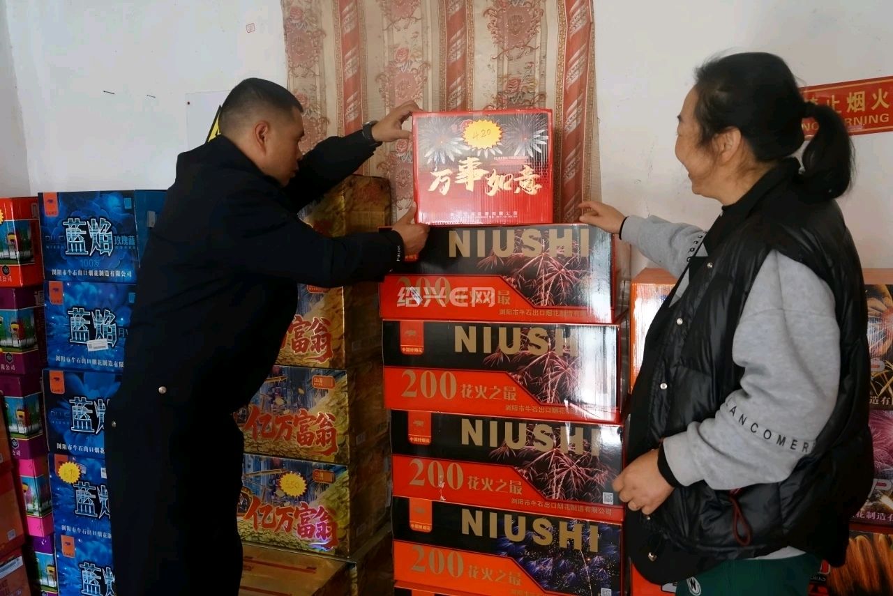 城东派出所民警对辖区内烟花爆竹经销商户开展精准宣传与排查。检查同时,民警向居民及商户详细讲解“双禁”法规与安全风险,明确违规需承担的法律责任。