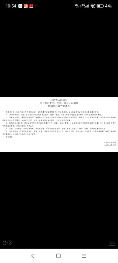 该通告当时表示,自2020年10月1日起,在山西省行政区域内禁止生产、经营、储存、运输(除省外途经合法车辆外)和非法燃放烟花爆竹。