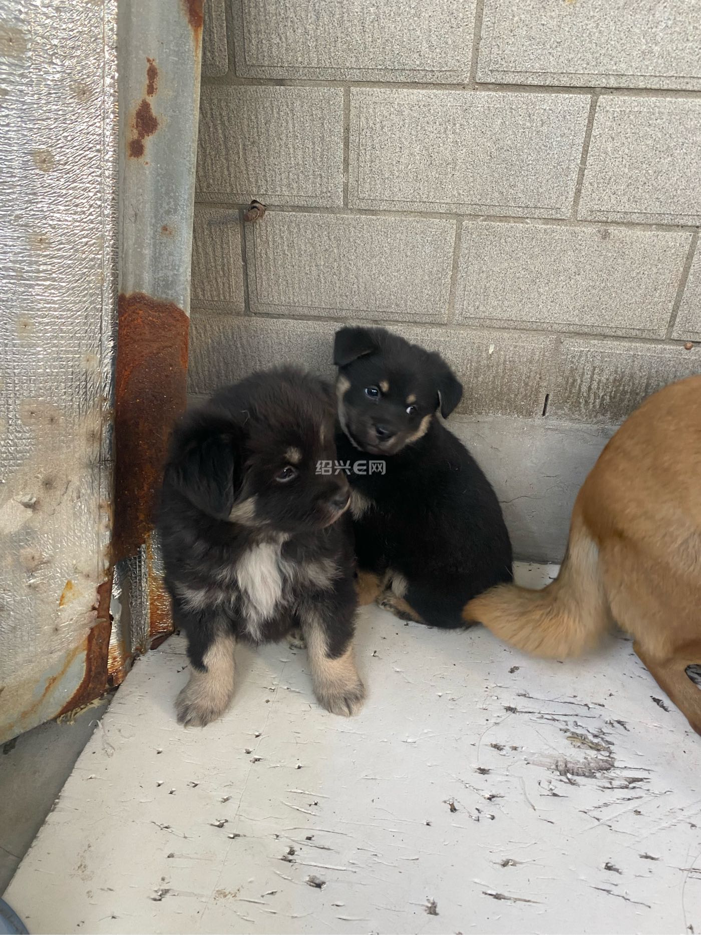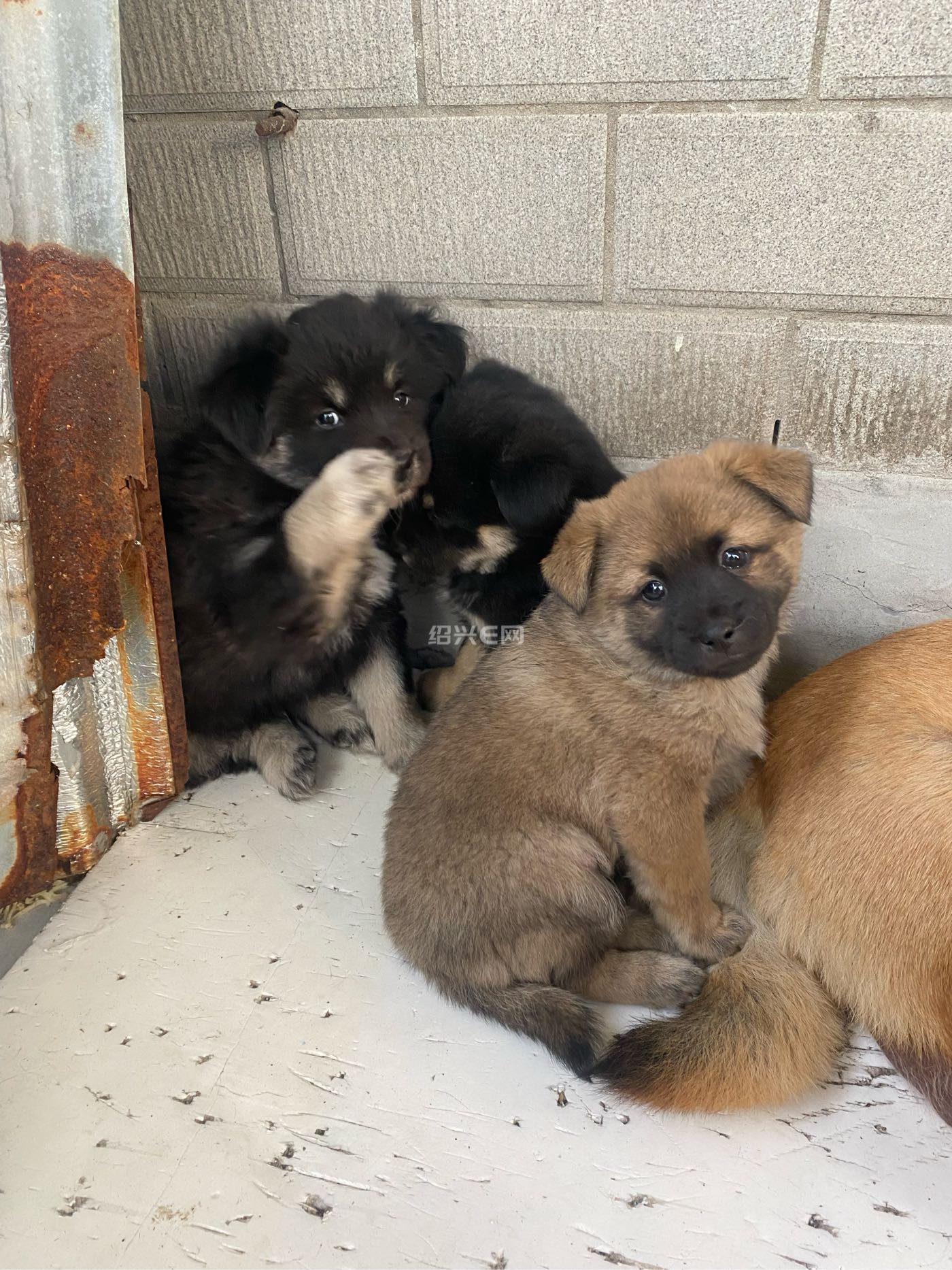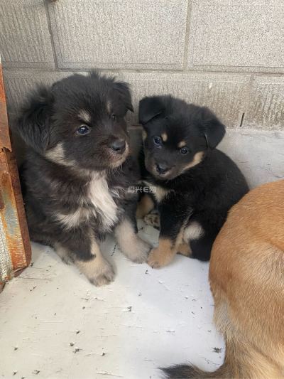 免费小狗领养啦。黄色母的,两只黑色公的