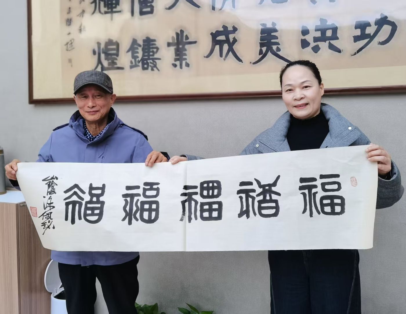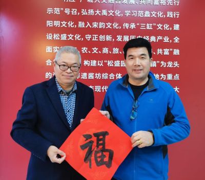 浙江省民间文艺家协会会员、工艺美术大师徐佩铭先生现场书法创作,写下“传承技艺酿造,现代企业管理”等标语。浙江省乡村文化能人黄天德现场送书法作品、送“福”给大家。共同祝福新年。第五、六、七届绍兴市人大代表刘玲美,文化志愿者韩月丽、胡利英等参加活动。