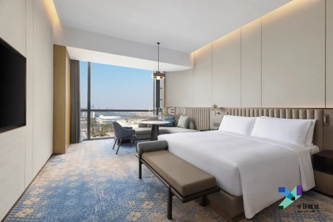 据了解,酒店坐落于镜湖新区核心地段,共设有347间现代客房及长住套房。其设计巧妙融合东方美学与绍兴地域文化,大堂以艺术化的乌篷船造型与水波纹穹顶,勾勒出鲜明的江南意境。酒店还配备超过800平方米的无柱宴会厅,并设有8间灵活多功能厅,能满足各类高端商务与社交活动需求。