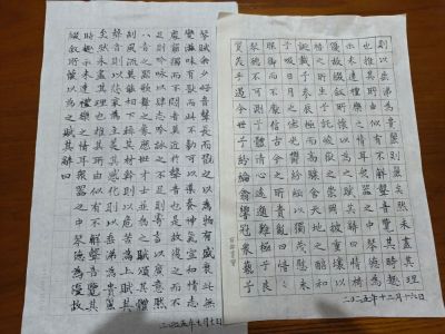 左边的是临摹琴赋的第一天的第一张,右边是最近在家里临摹的,前几天在杭州,最新的一张留在了那里。这两个月因为腱鞘囊肿厉害,眼睛也越来越花,秋天又特别美,外出赏叶也占用了很大一部分闲暇时间,所以减少了一些练习时间。算不上进步很大,但至少有在变好,蛮好,甚是开心。