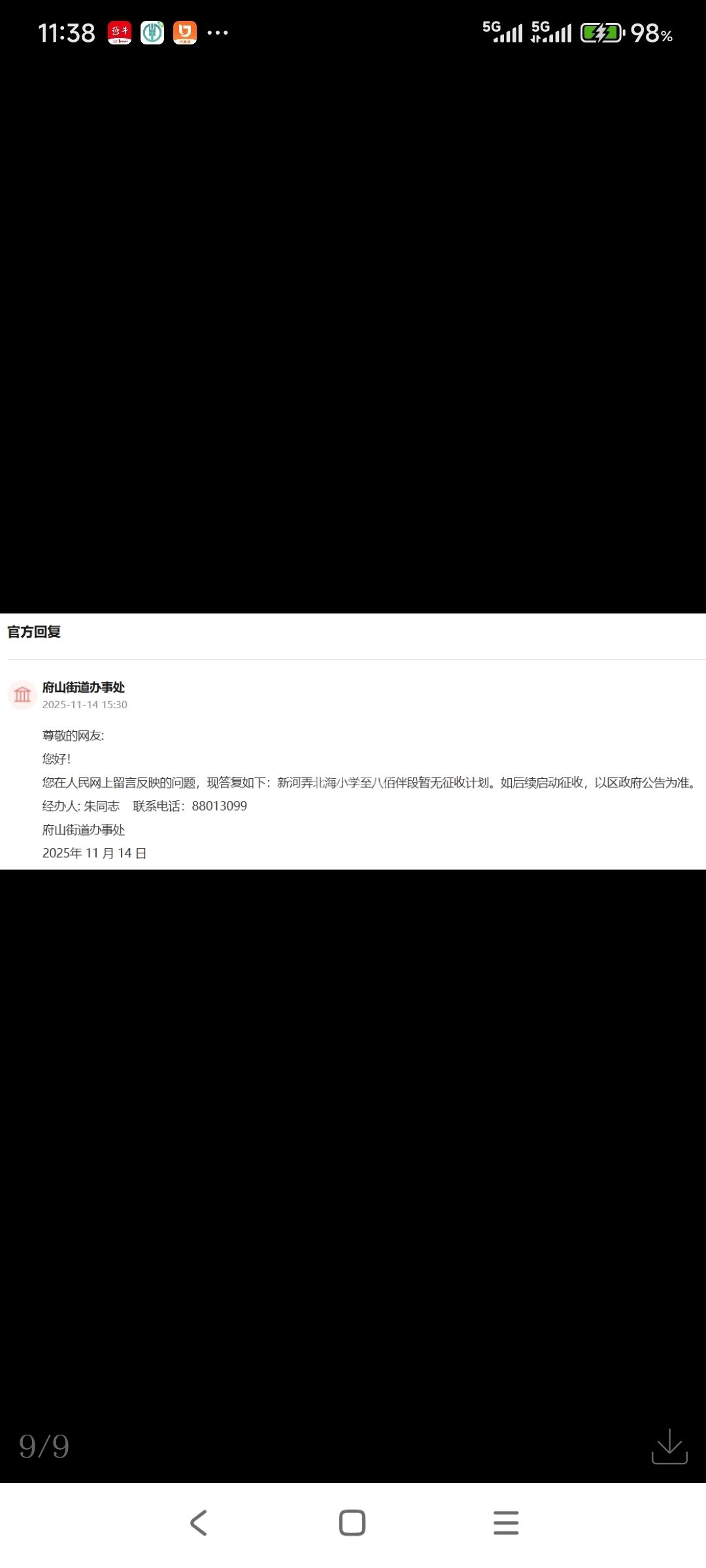 问:请问下府山街道新河弄,北海小学至八佰伴中间段房屋近期是否有腾空或者拆迁计划?