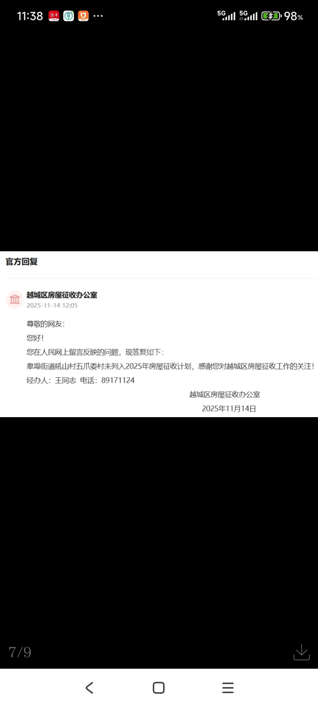 问:请问领导,绍兴市越城区陶家楼底什么时候拆迁,我们同一幢对面已已拆迁,谢谢。