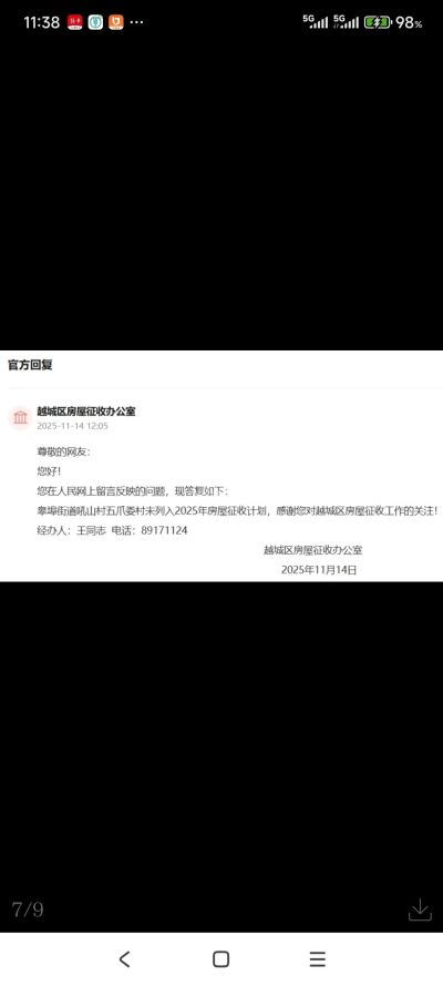 问:因为看到五联工业园区已经在拆迁了,也想问一下五联村大概什么时候会启动拆迁?望回复