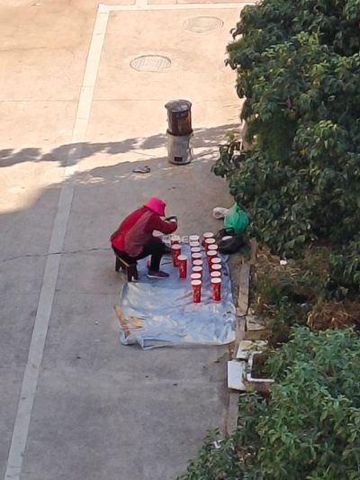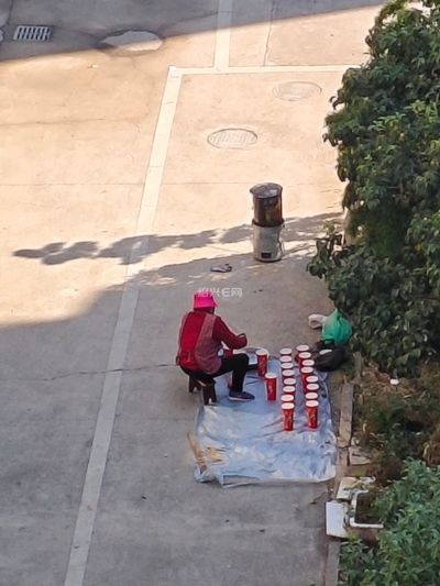 记得在地面铺一层塑料布,还是有环保意识的人。