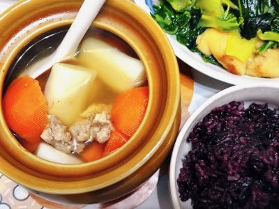 昨天翻箱倒柜,发现我的小炖盅被无情没了。重新买了套,坐等