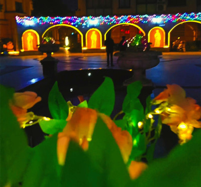 五彩斑斓的灯光交织在一起,宛如一幅梦幻般的画卷,给金鸿物业点赞!