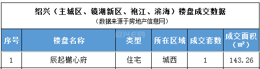 1月3日绍兴(包括主城区、镜湖、袍江、滨海)商品房网签1套,网签面积143.26平方米。其中,商品住宅网签1套,办公物业成交0套。