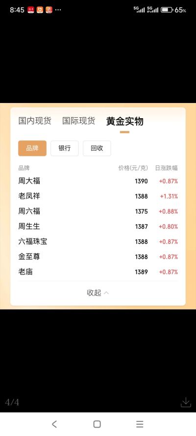 国内金饰价格也应声飙升,据腾讯理财通最新数据,周大福已涨至1390元/克,老庙紧随其后,报1389元/克,老凤祥、金至尊和六福珠宝报1388元/克,周生生也达到了1387元/克。