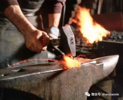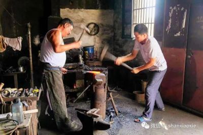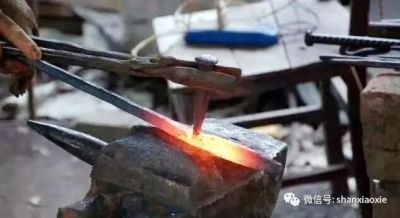 ?经过一番锤打,铁件由红转褐,冷却后再放回炉灶中烧红,接着再次錘打,如此反复两三次,才算初步完成。定型后的铁件,刃口部位还需进一步修整,要将刃口截平、锉齐,经过戗、刮等工序,使其刃口锃亮锋利。