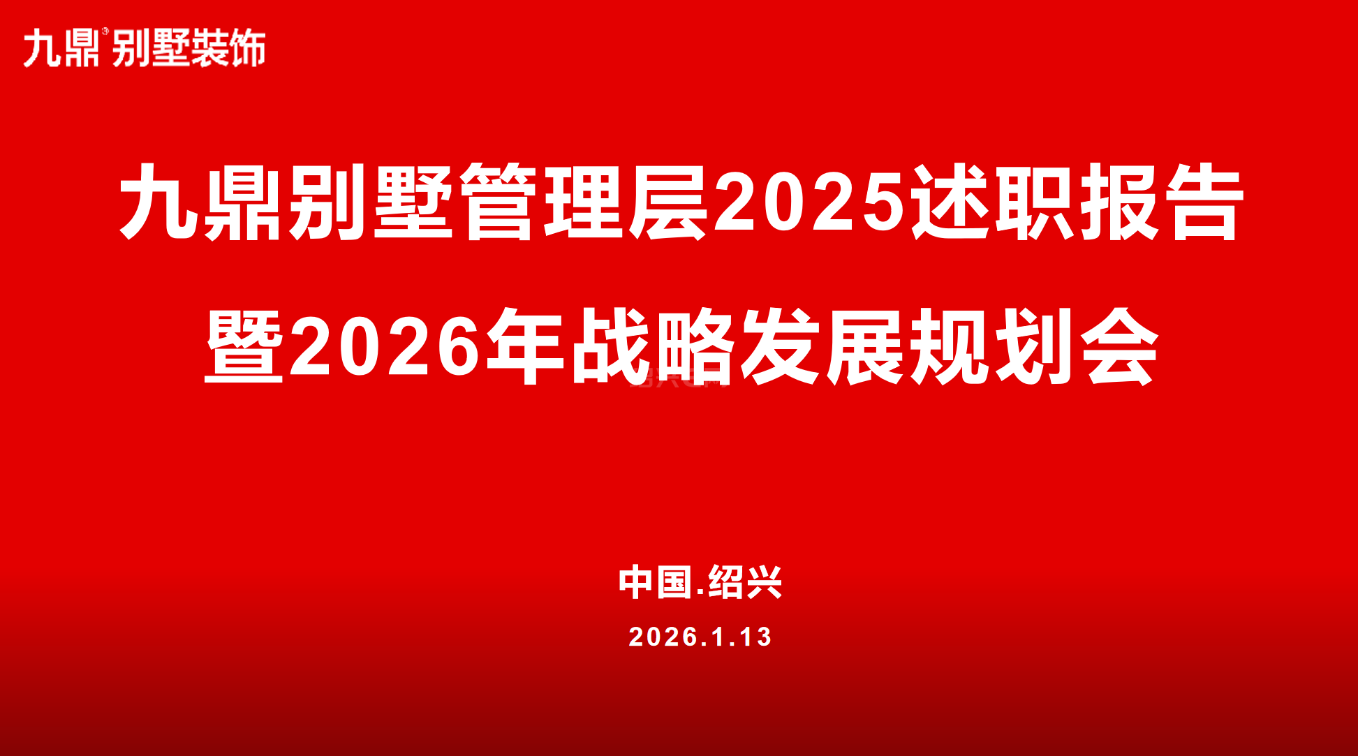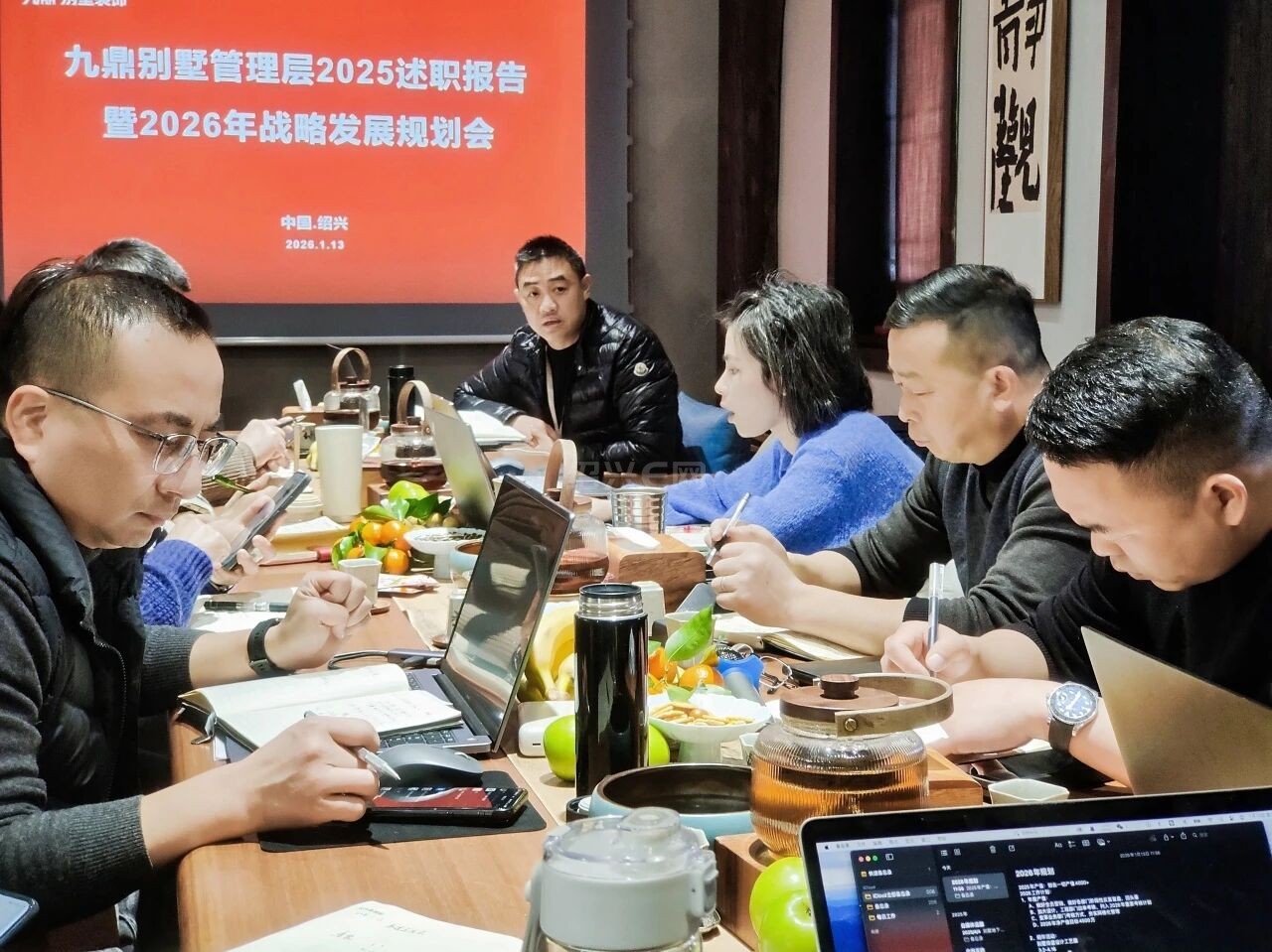 1月13日,绍兴九鼎别墅管理层2025年度述职报告暨2026年战略发展规划会顺利召开。绍兴九鼎别墅管理层参加会议,全面复盘2025年绍兴九鼎运营管理工作,深入分析行业发展态势,谋划2026年战略发展方向。