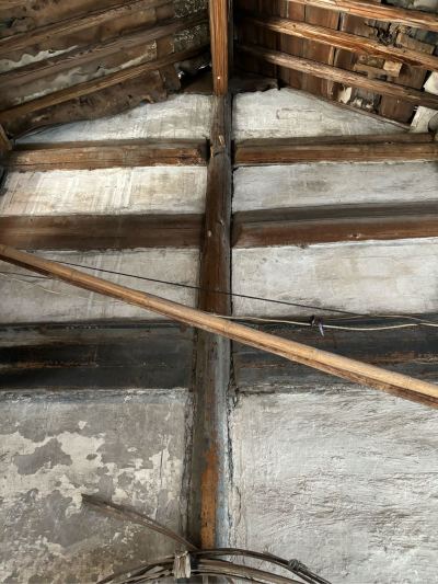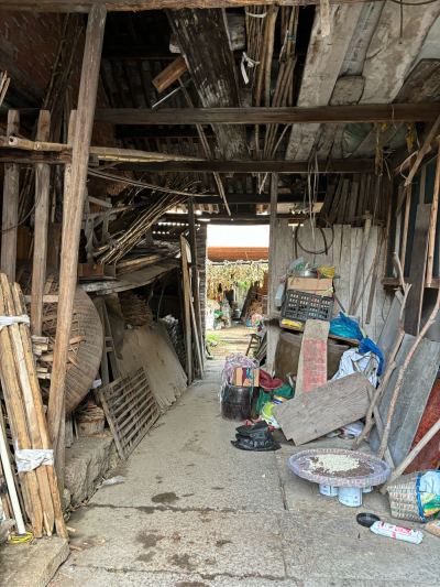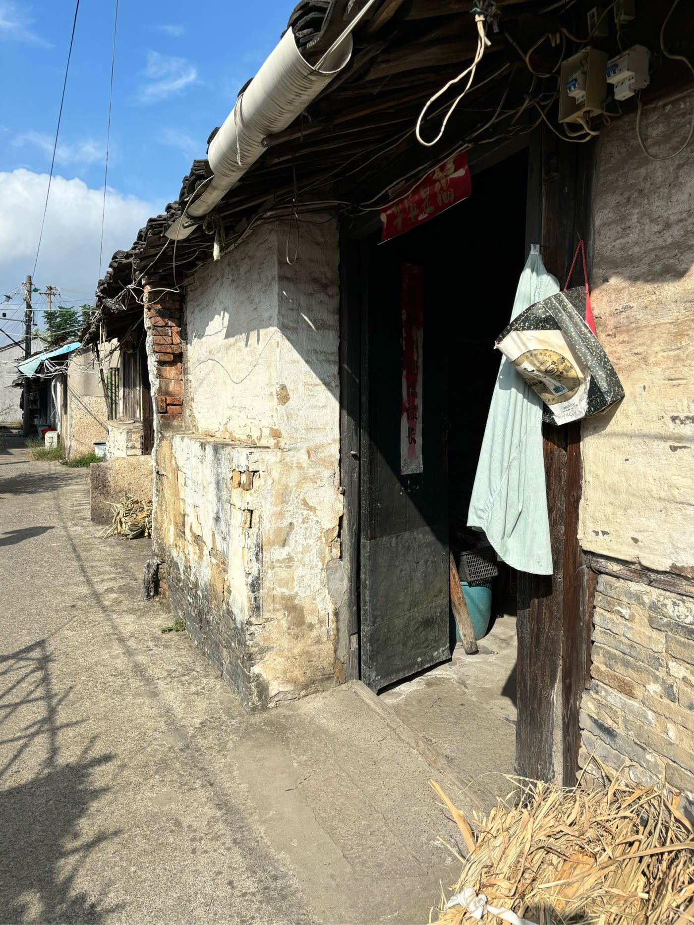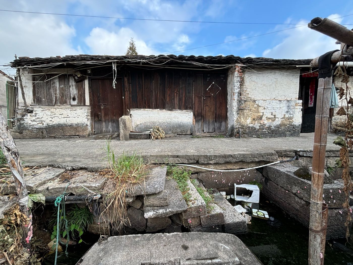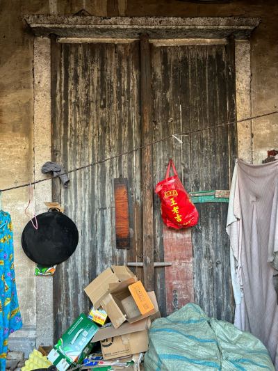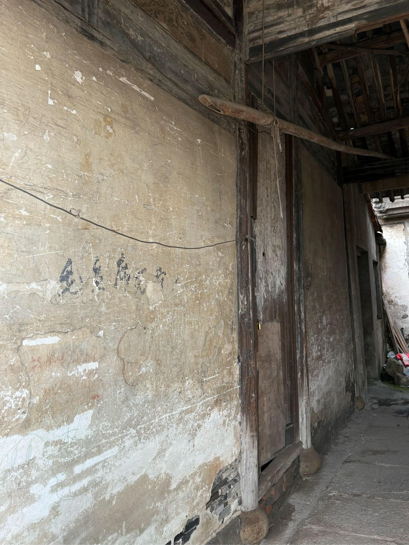 5,门前江边一排店面老屋,明显的留有柜台、排门板的痕迹,问了下村民,说其中有一间是卖豆腐的,豆腐作坊 ?