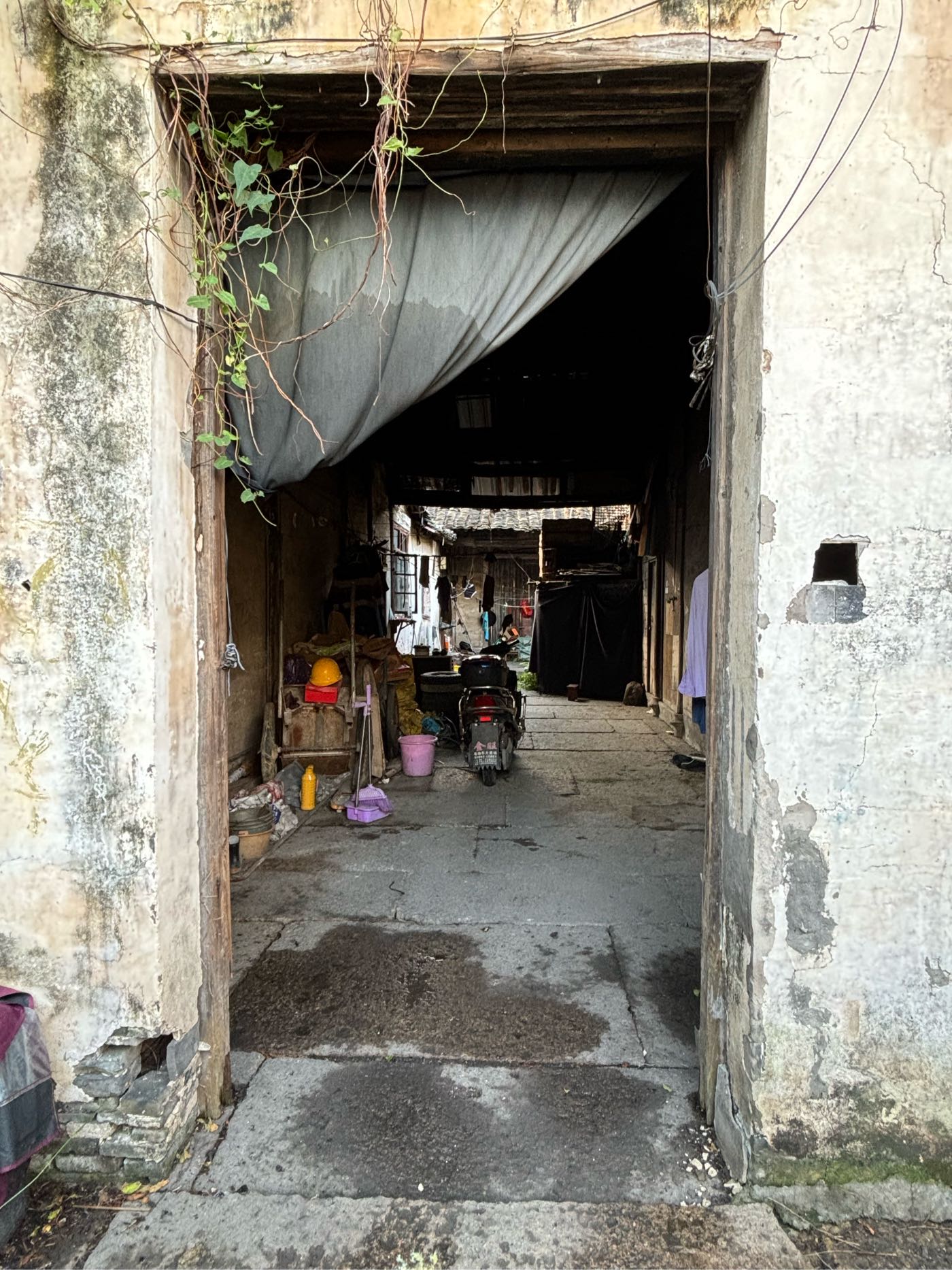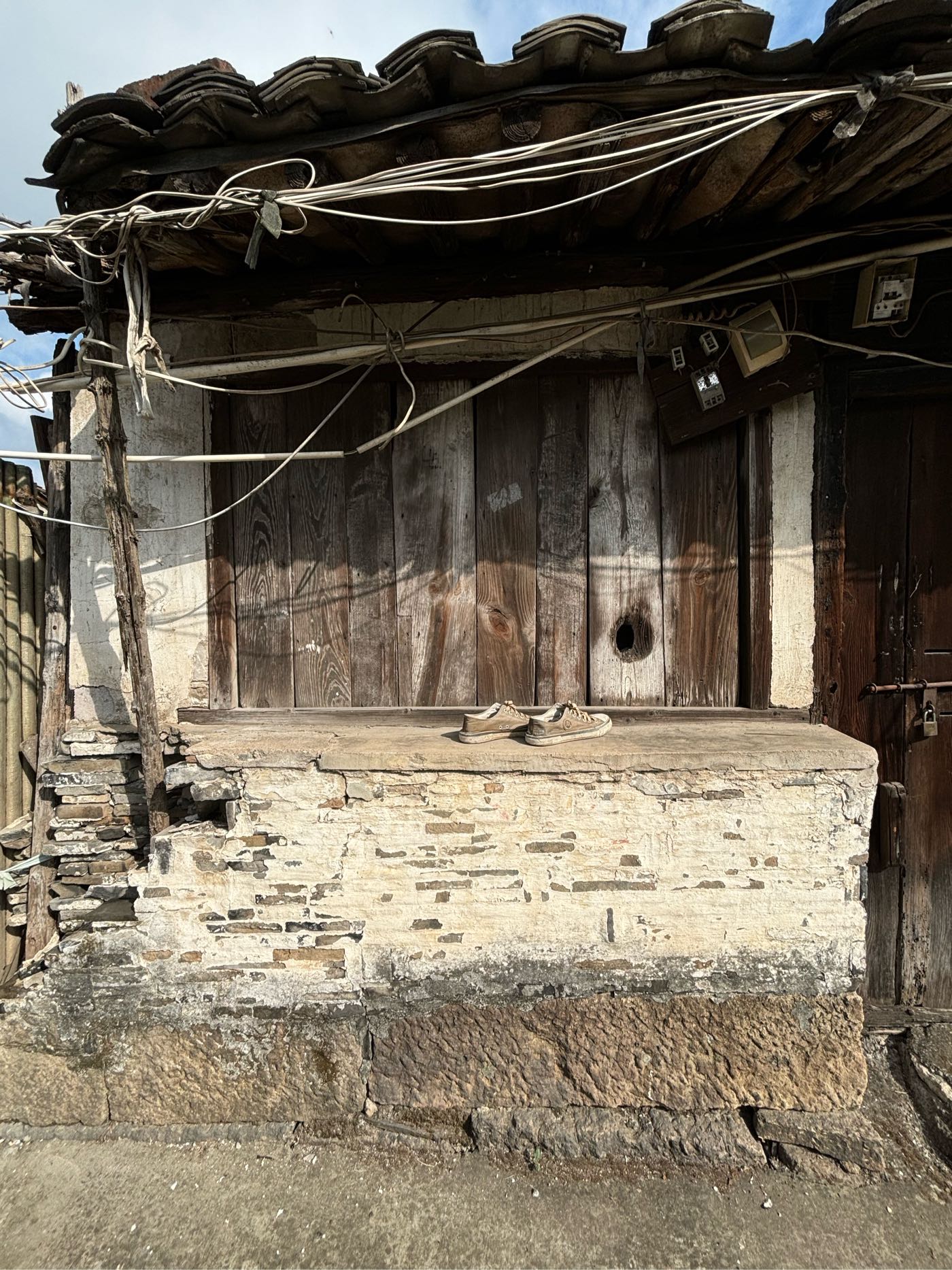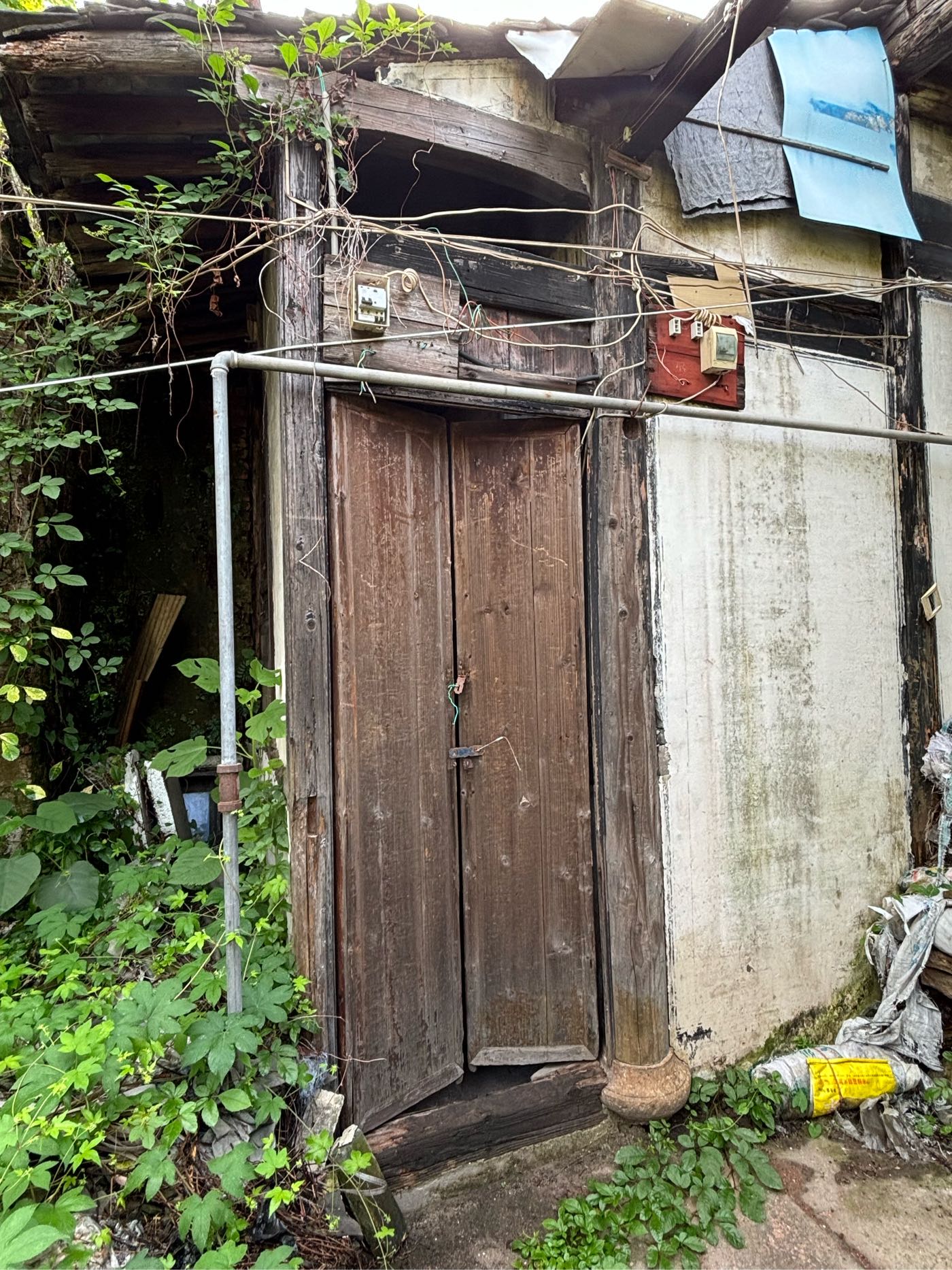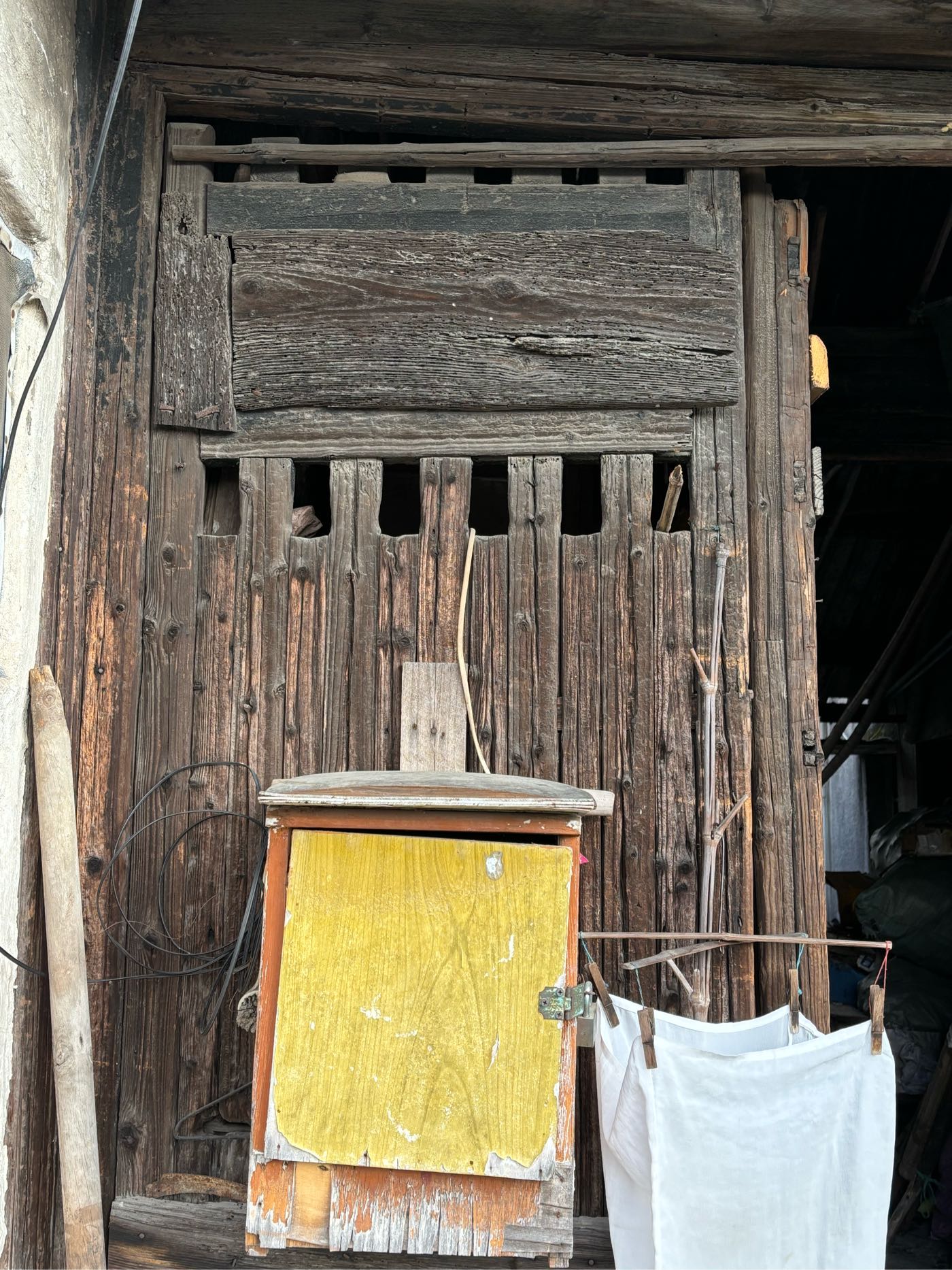5,门前江边一排店面老屋,明显的留有柜台、排门板的痕迹,问了下村民,说其中有一间是卖豆腐的,豆腐作坊 ?