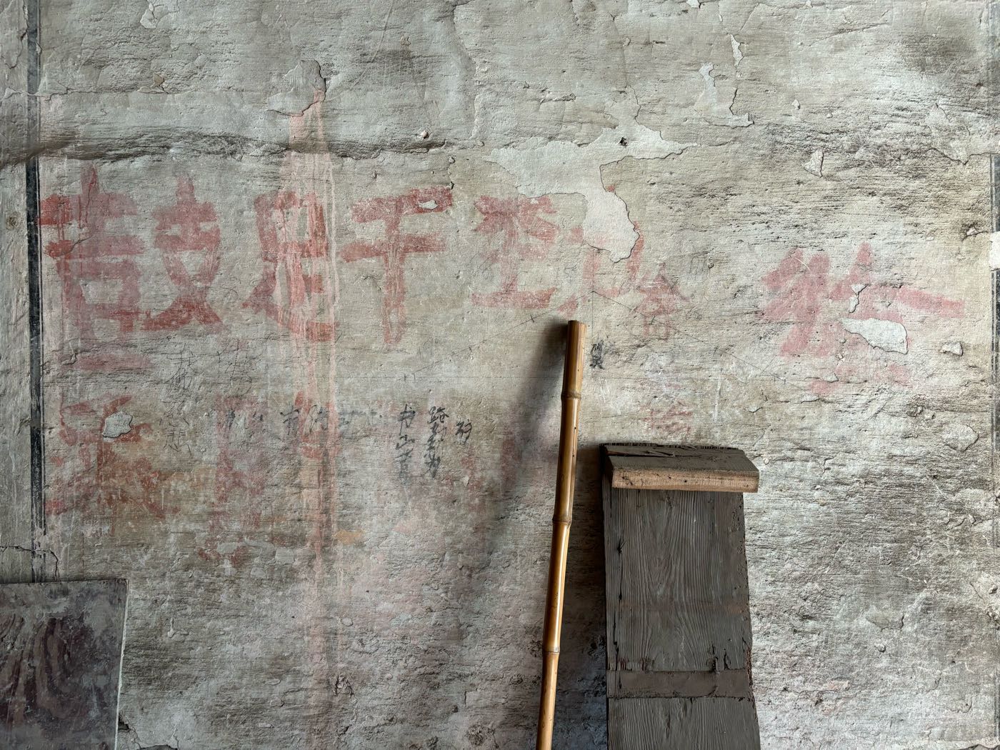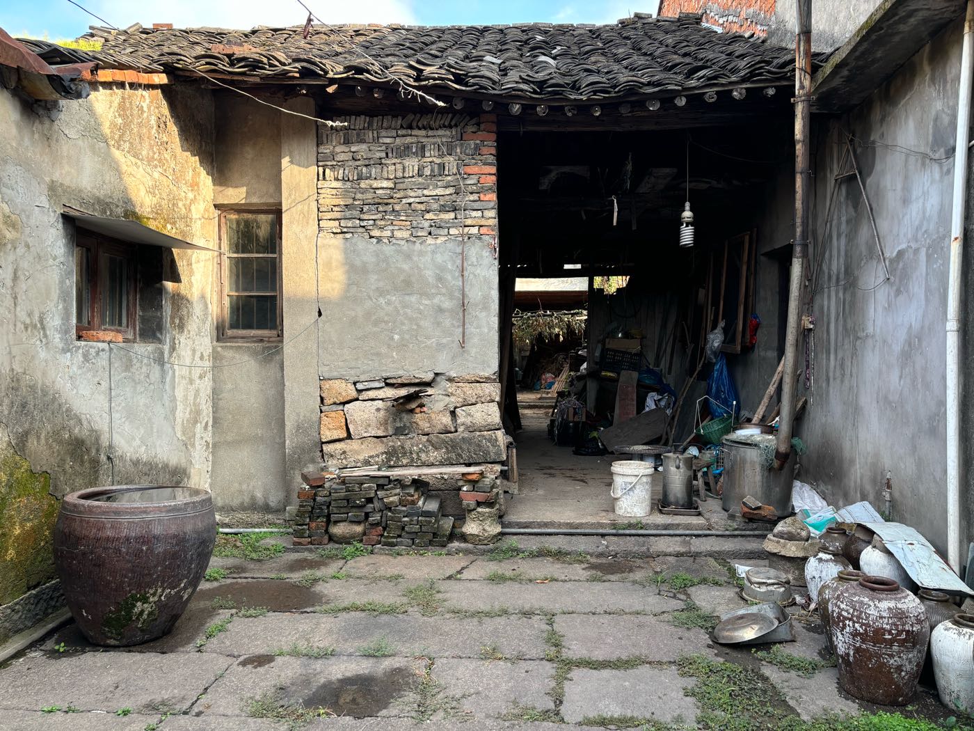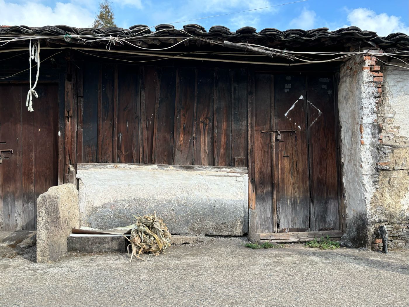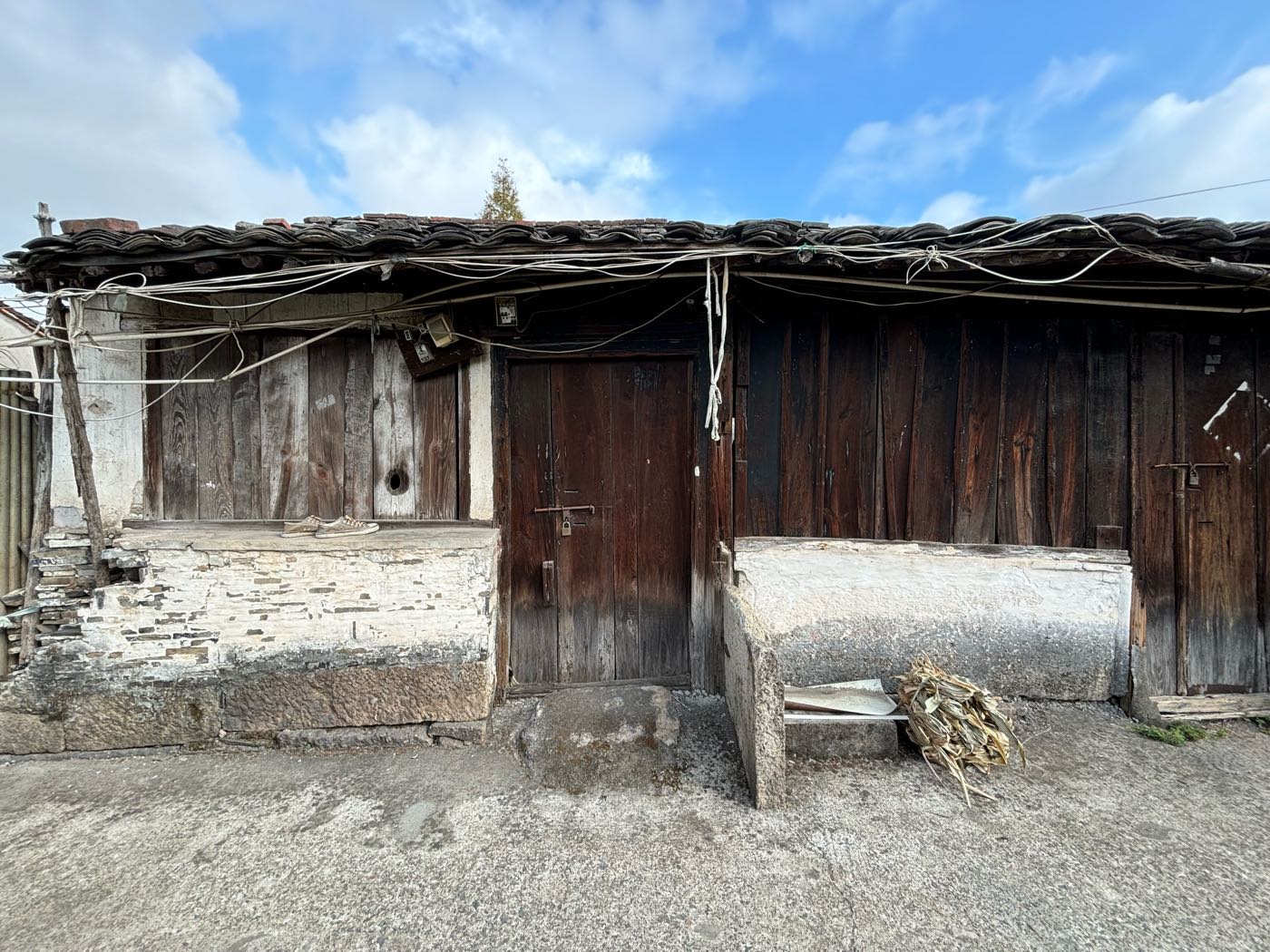 5,门前江边一排店面老屋,明显的留有柜台、排门板的痕迹,问了下村民,说其中有一间是卖豆腐的,豆腐作坊 ?