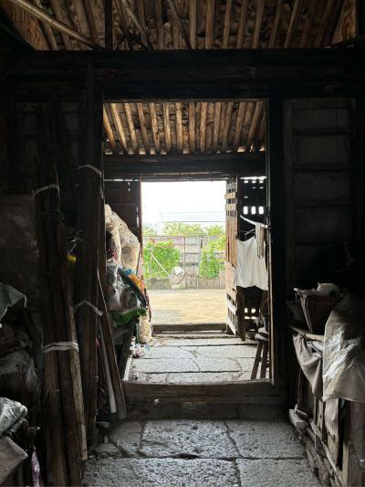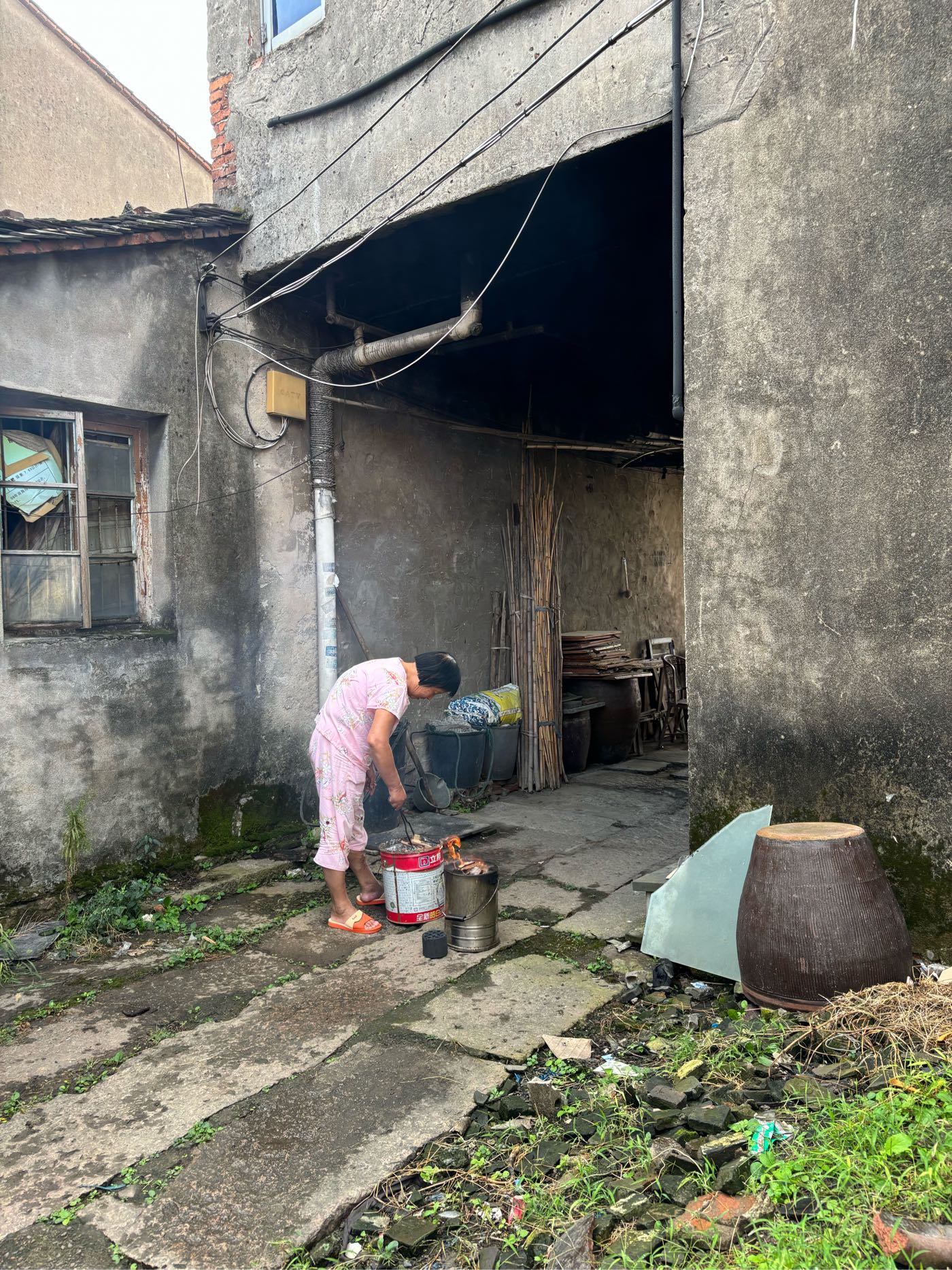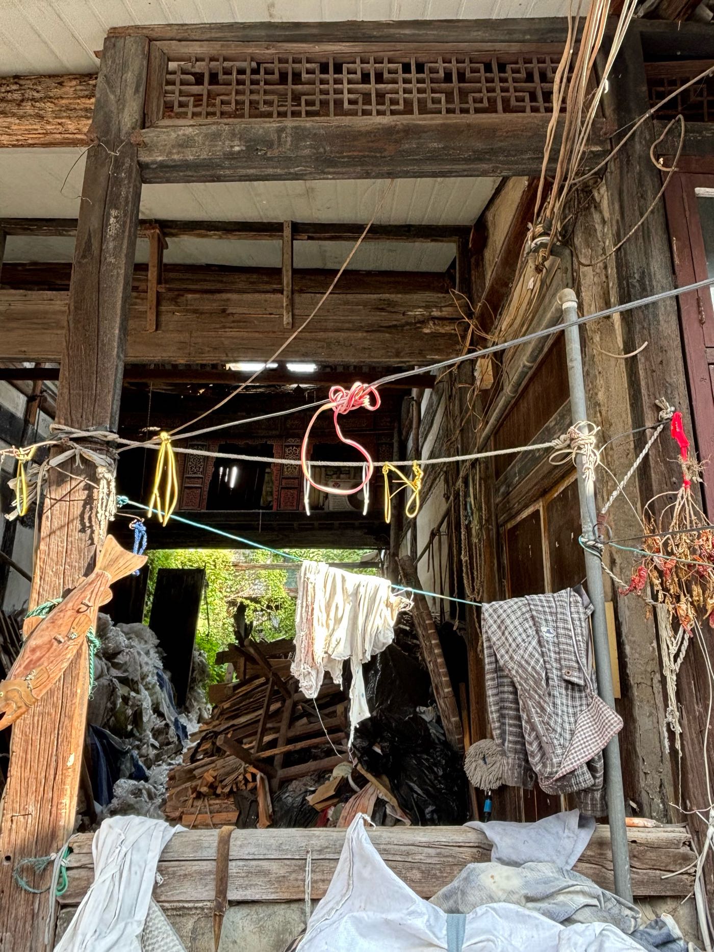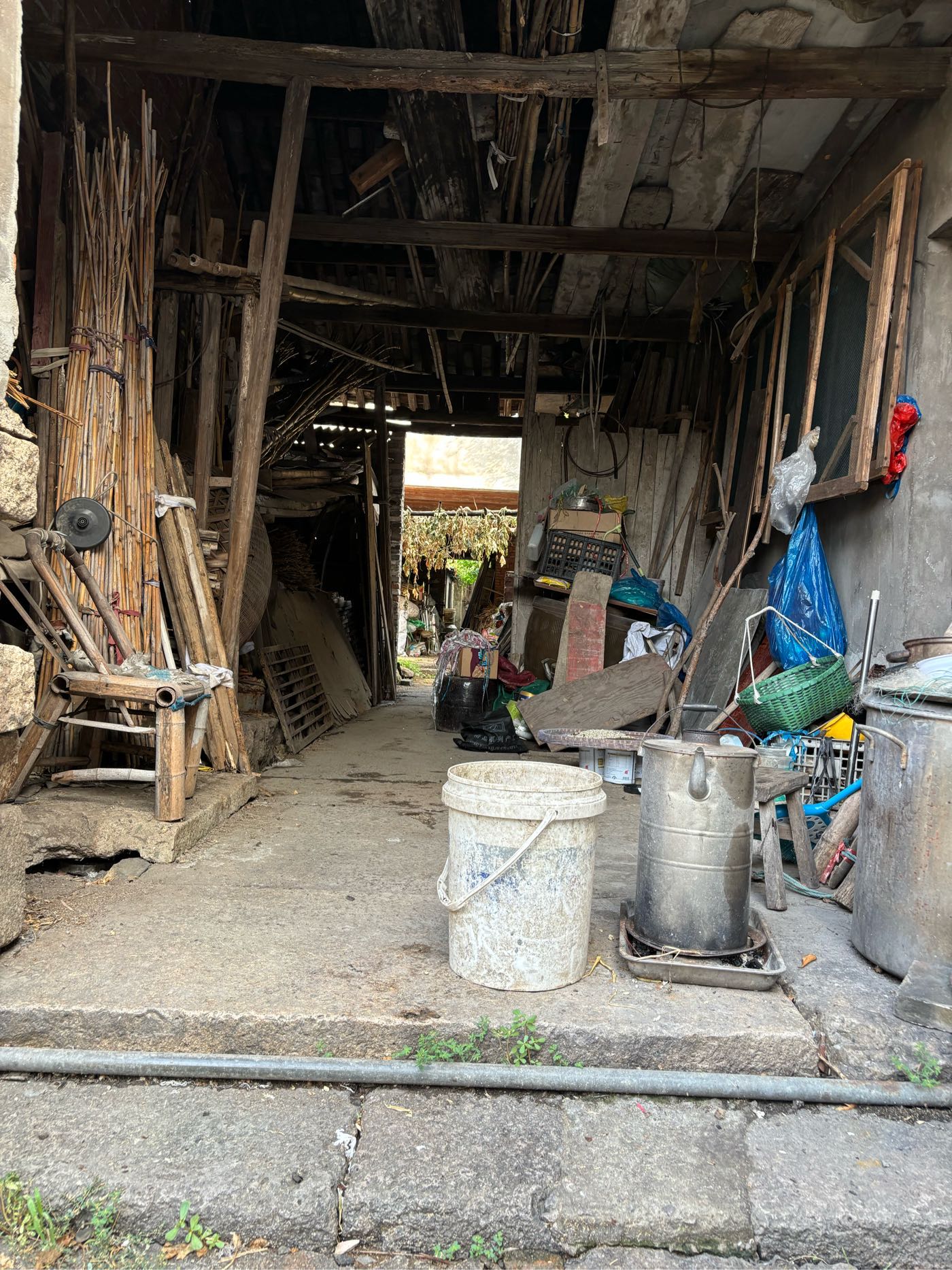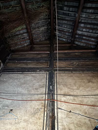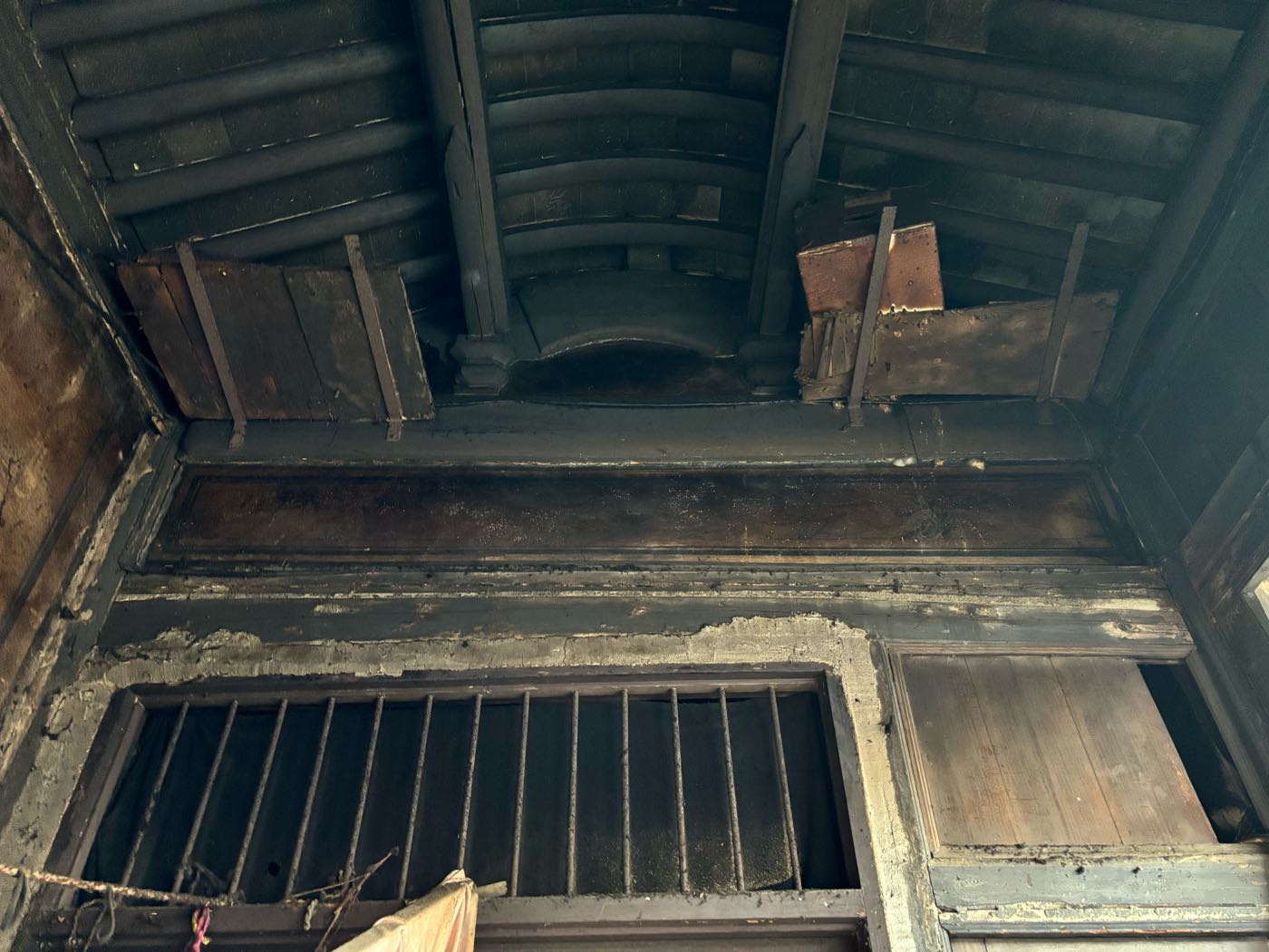 5,门前江边一排店面老屋,明显的留有柜台、排门板的痕迹,问了下村民,说其中有一间是卖豆腐的,豆腐作坊 ?