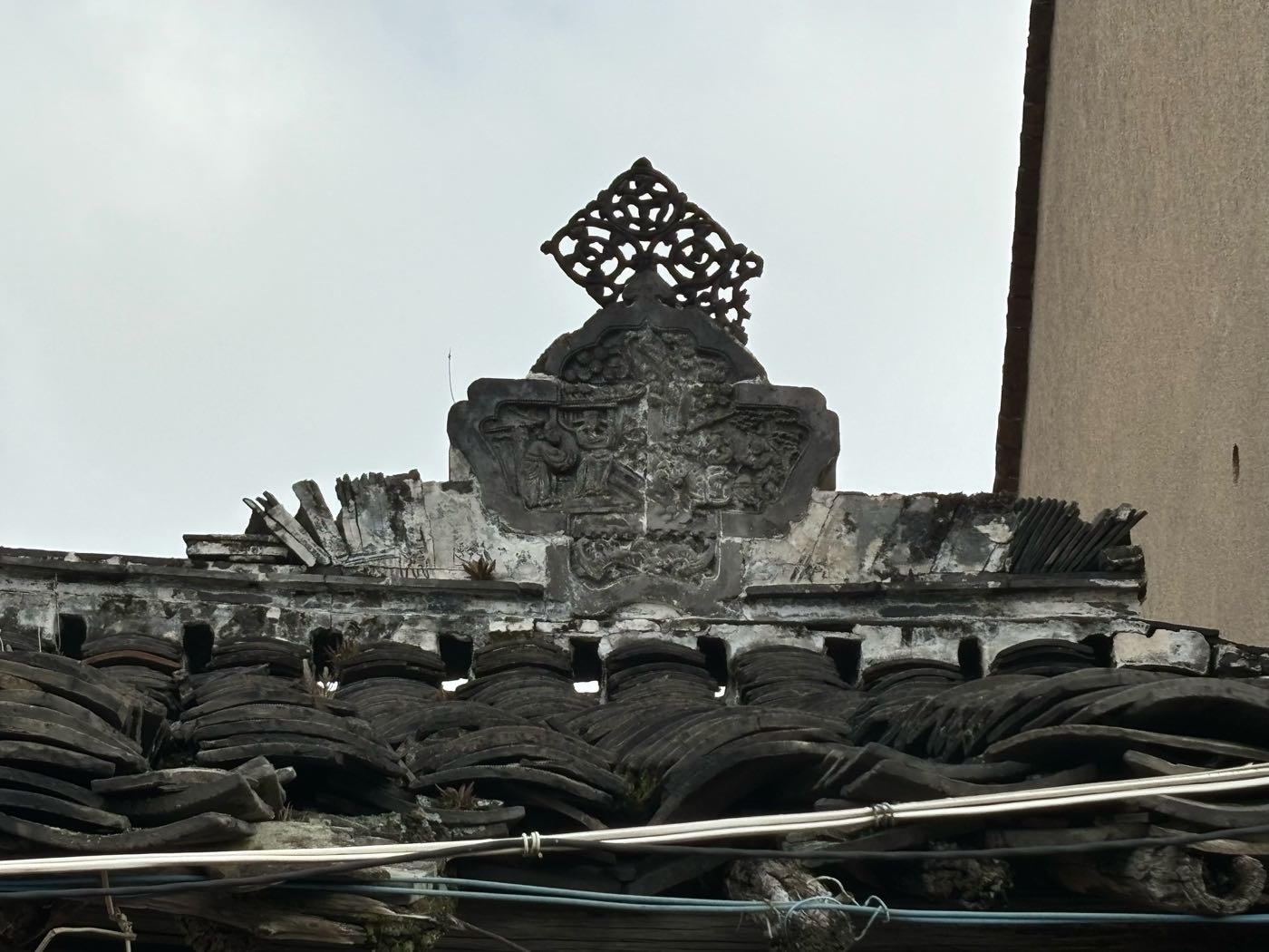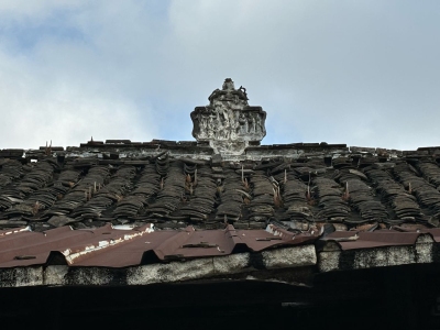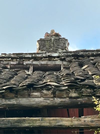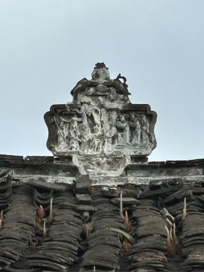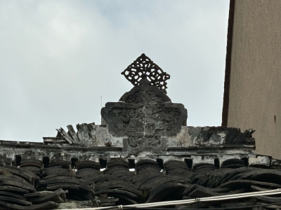 忘了这台门的第三个特点,屋顶脊刹。而且第一进和明间屋脊都有这屋刹,给台门增添了几多威风与荣耀。