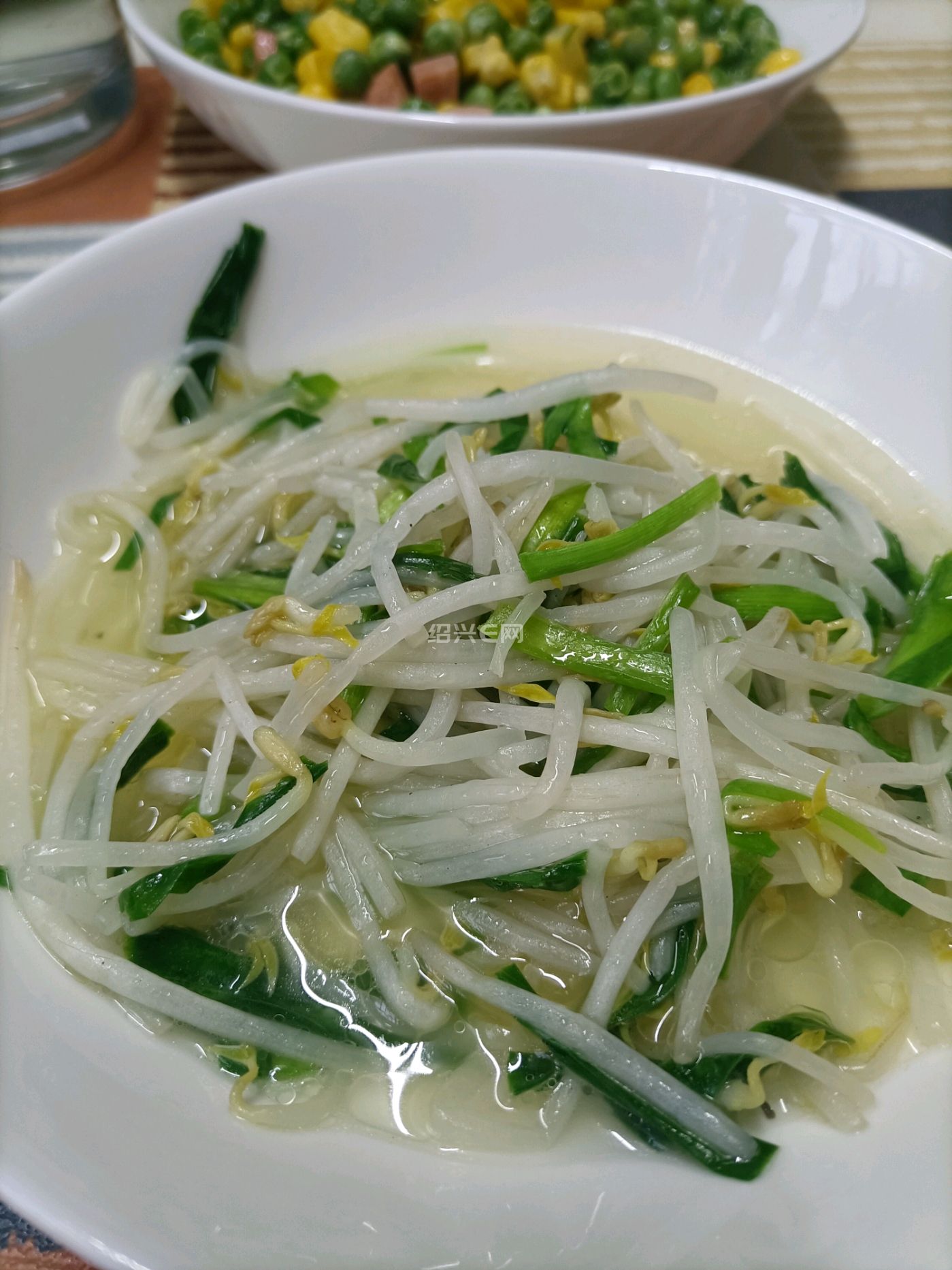 豌豆玉米&青韭炒豆芽&草籽炒年糕!