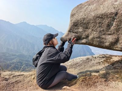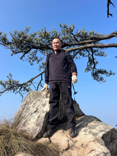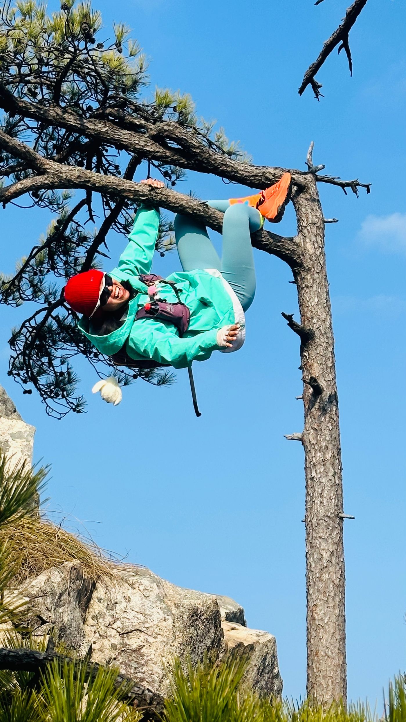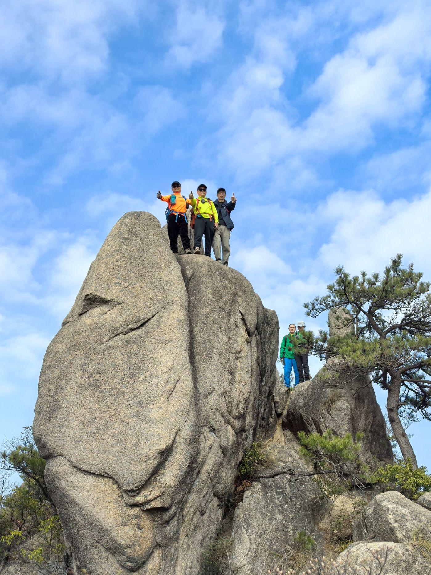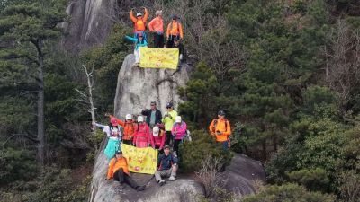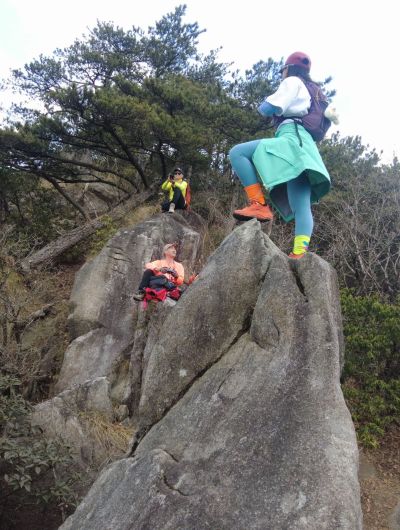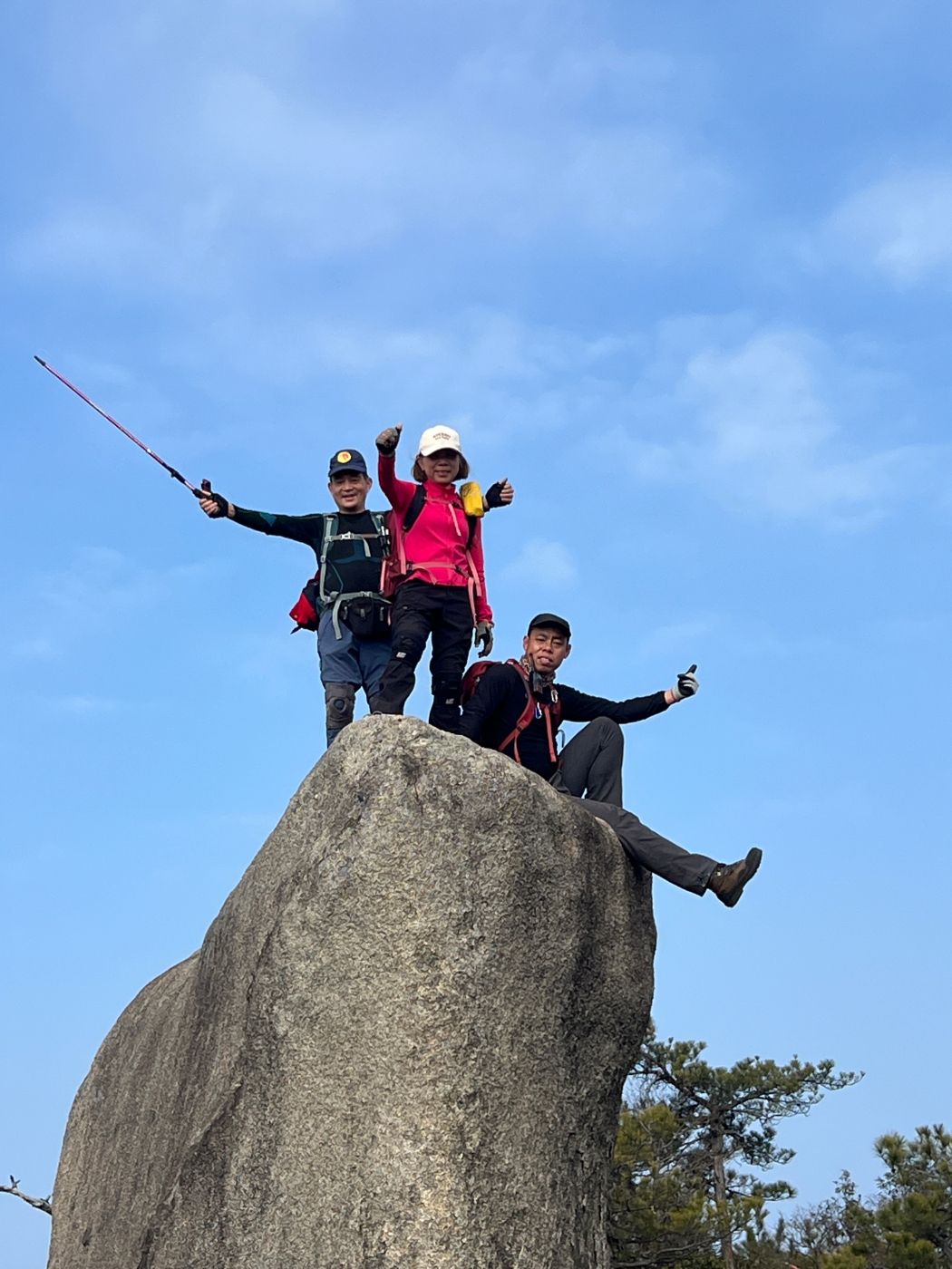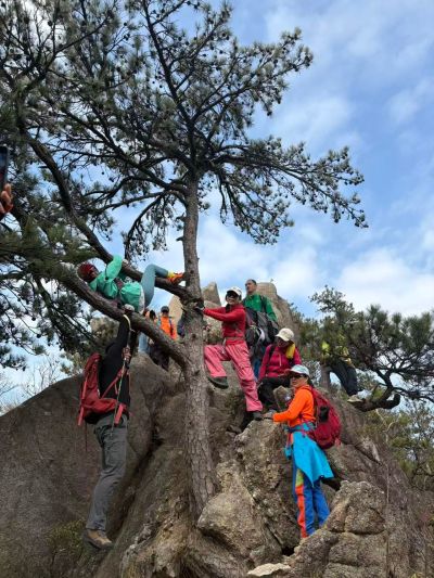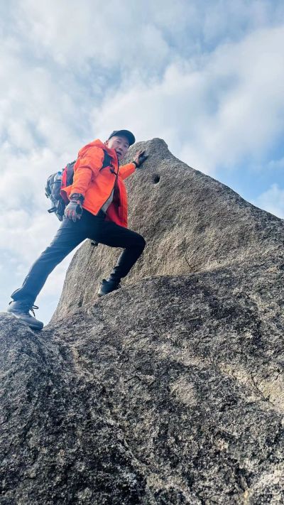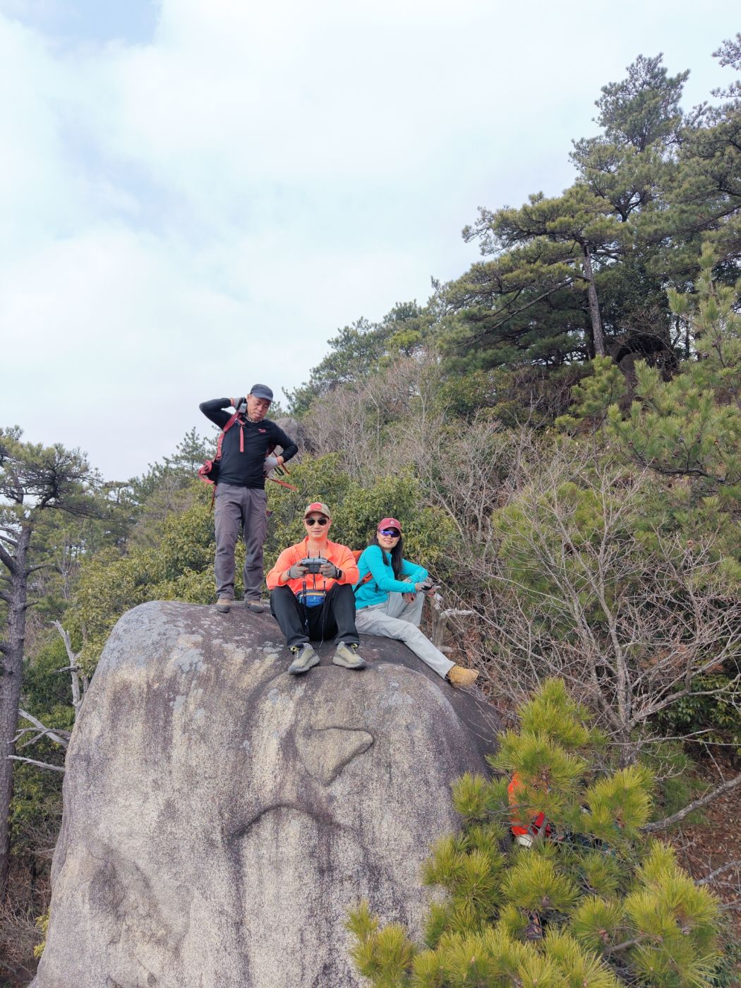 冬萧家朋路险长。九龙昂,戏珠光。北斗山野,石海踏苍茫。松涛脆响迎山客,攀绝壁,越危梁。