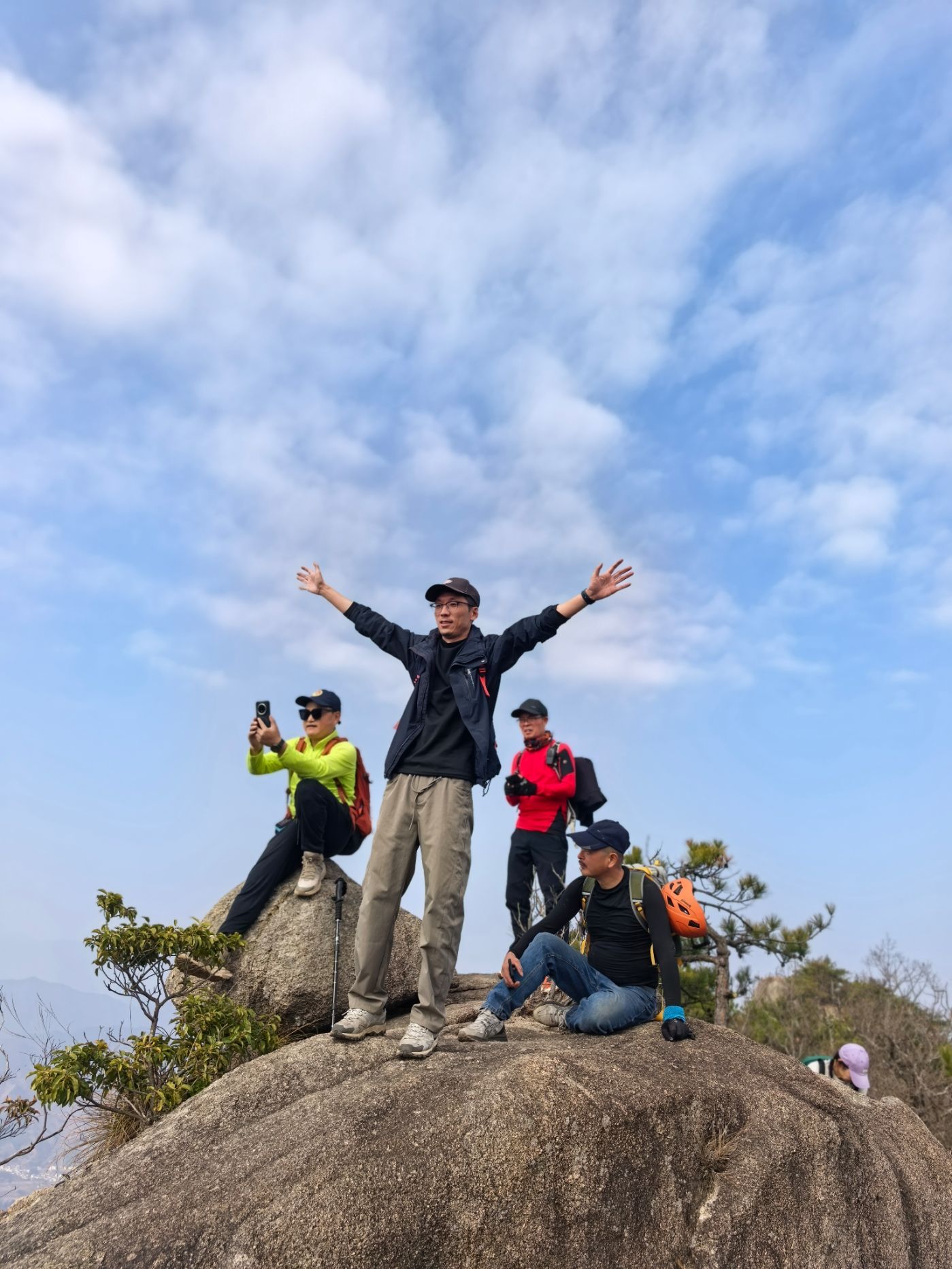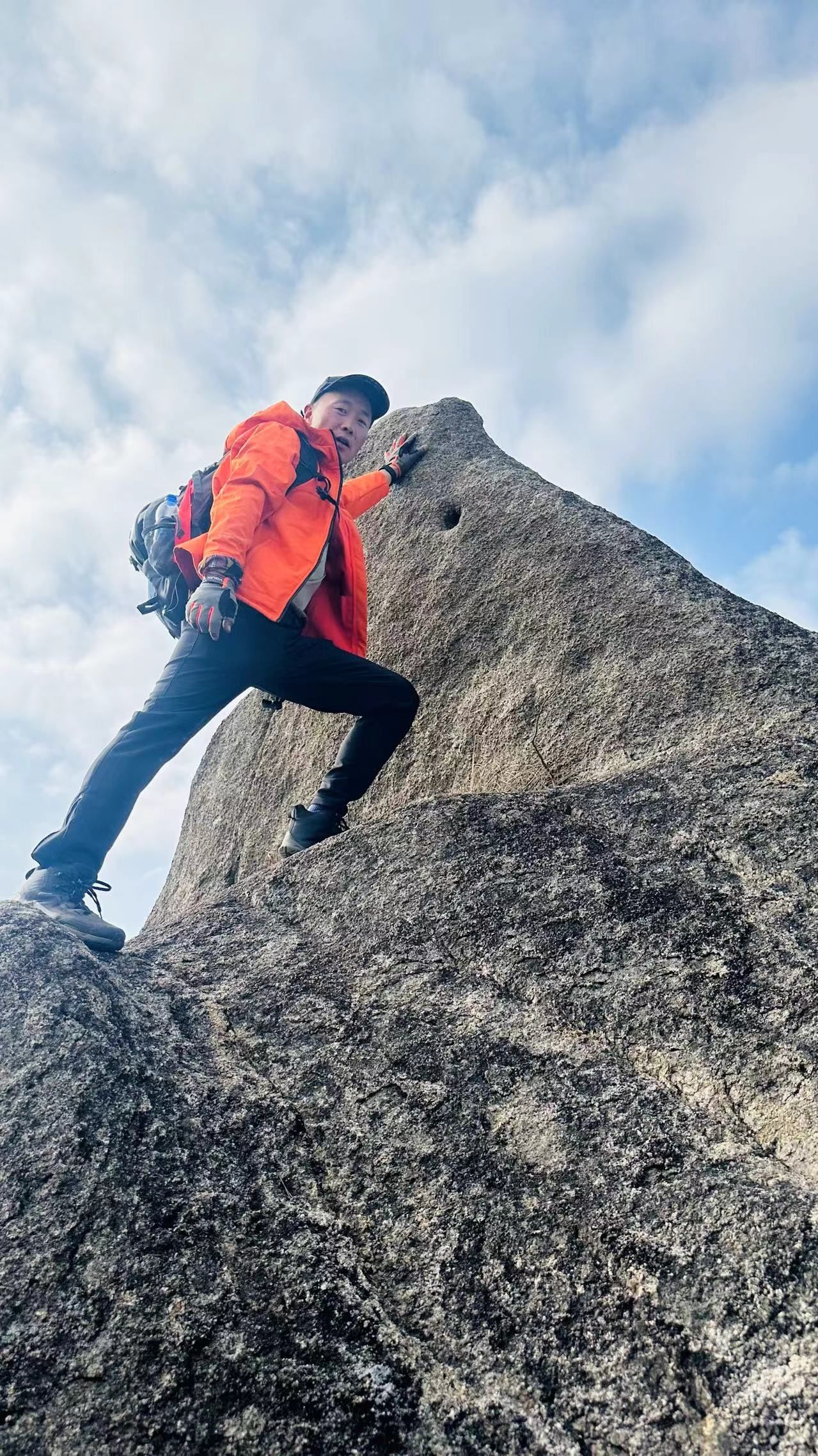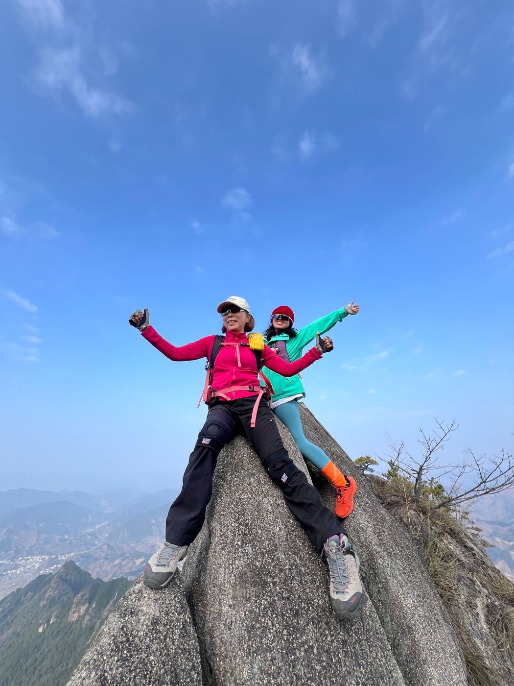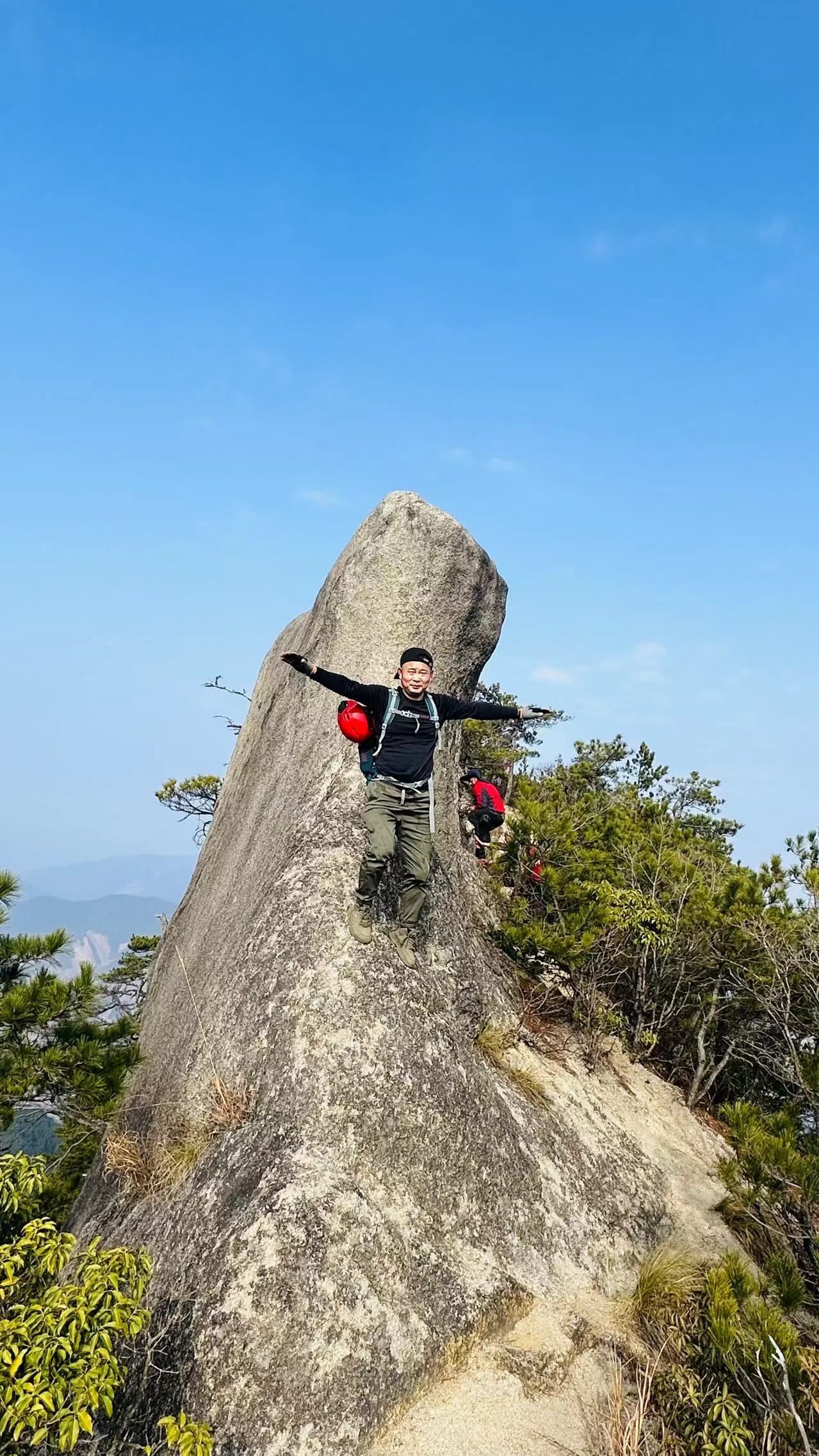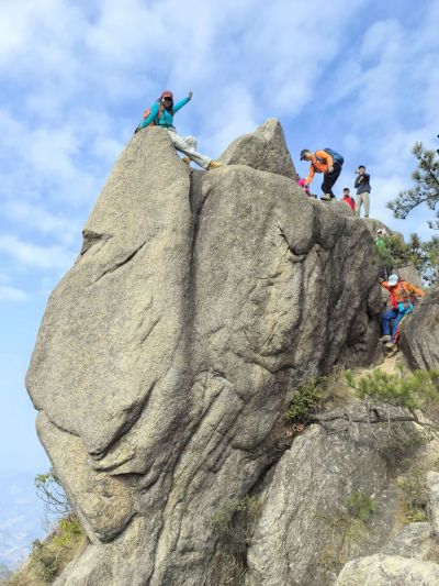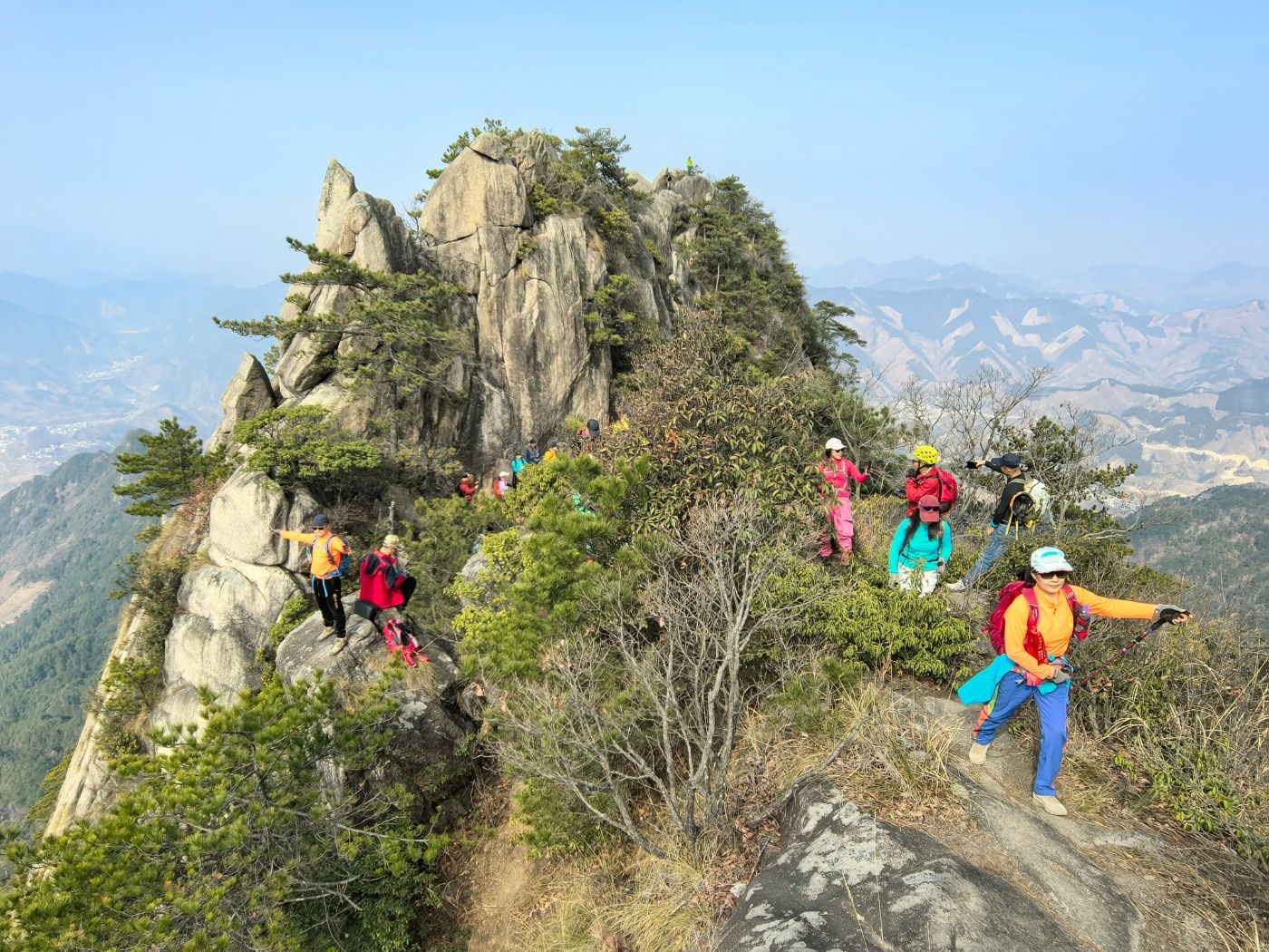 天门脊上瞰群岗。朔风狂,志犹坚。黄茅尖顶,云岚共徜徉。莫道陡险行途苦,千嶂过,尽诗章。