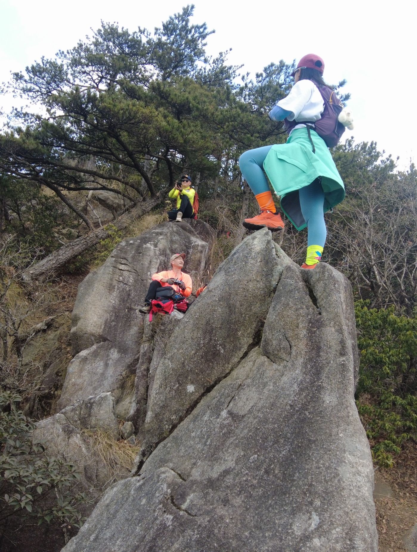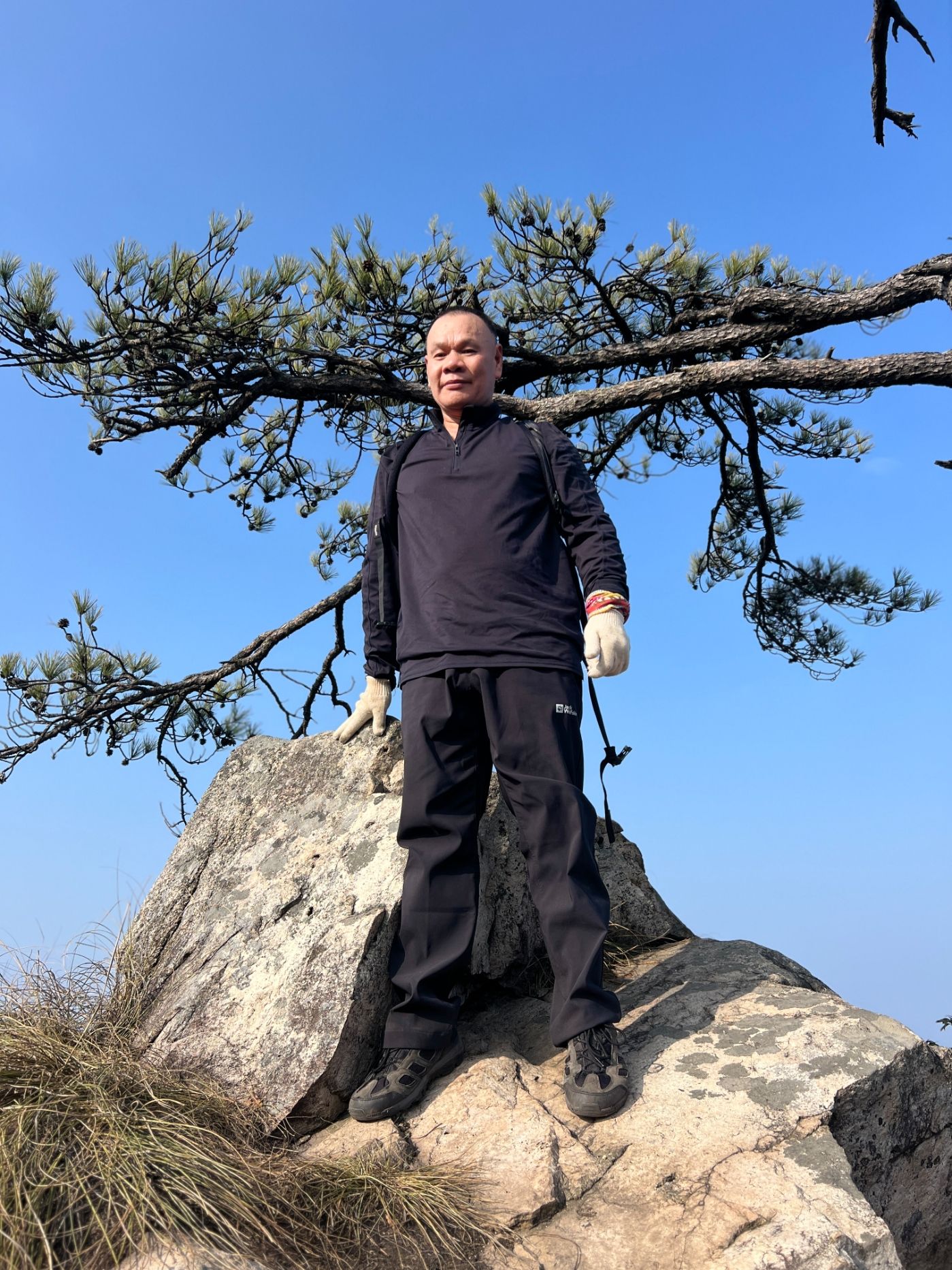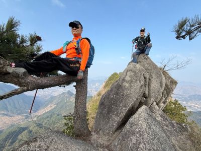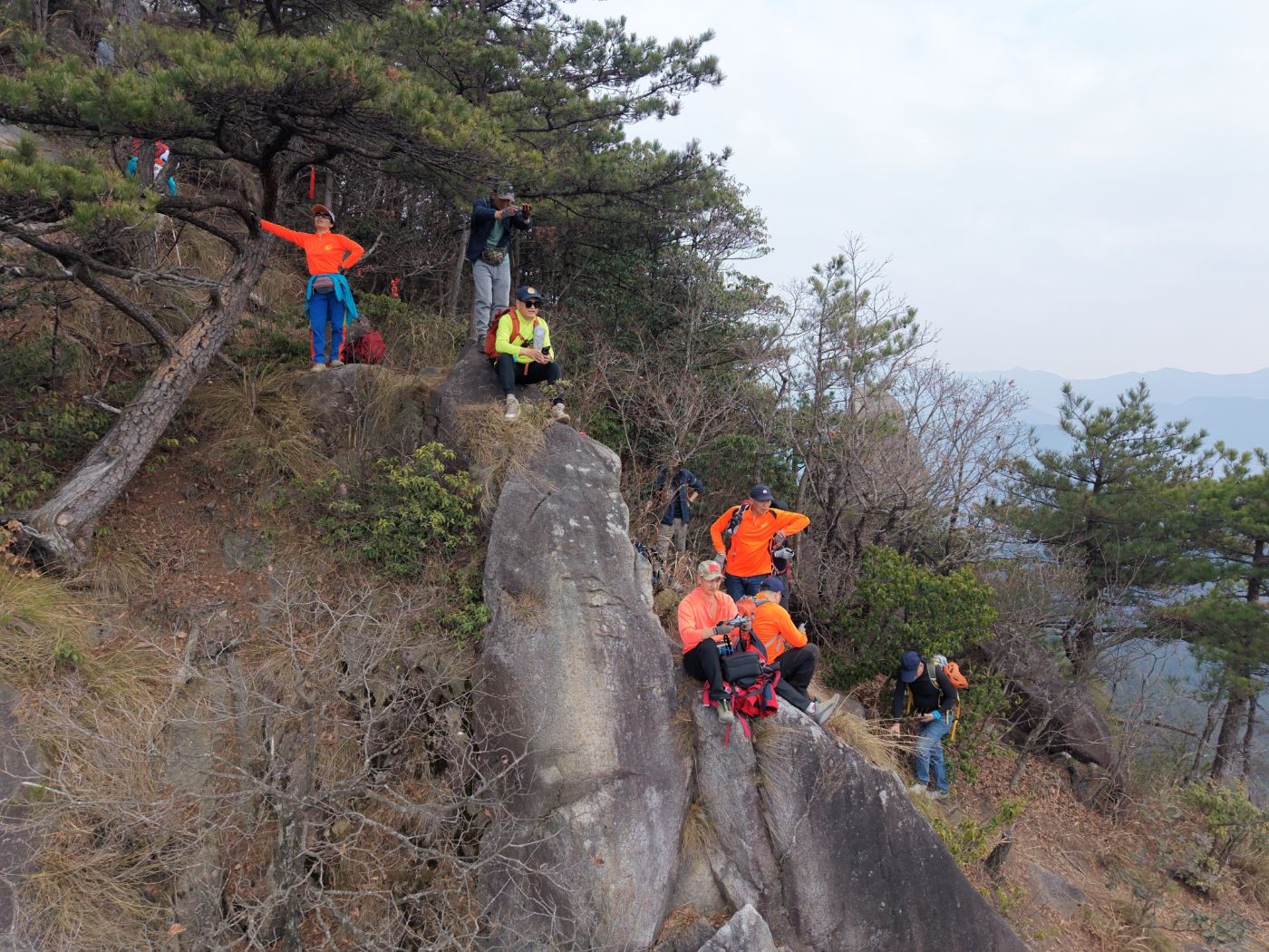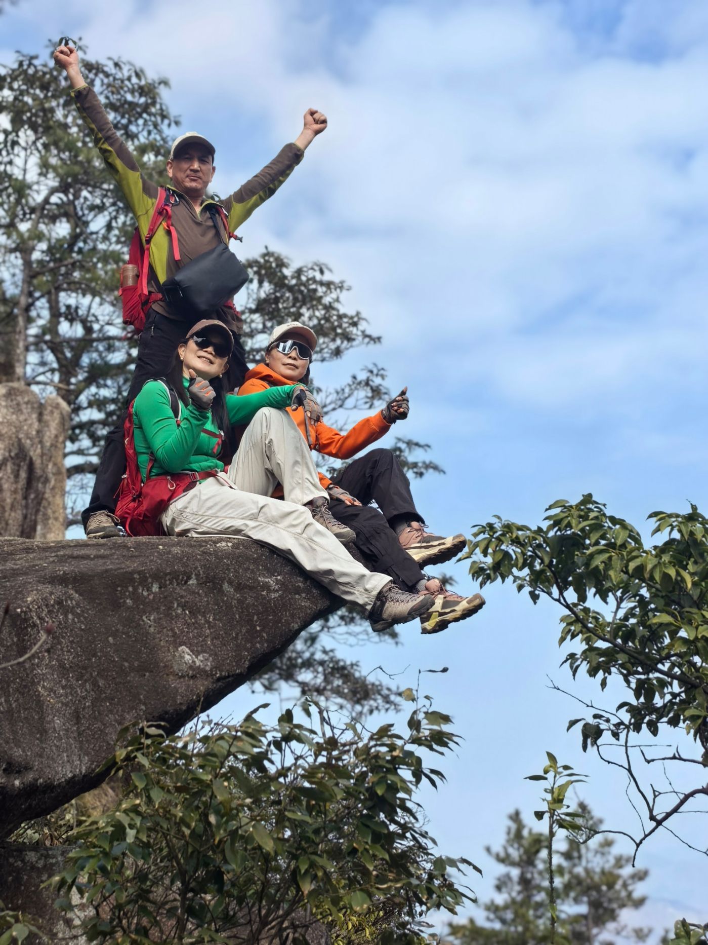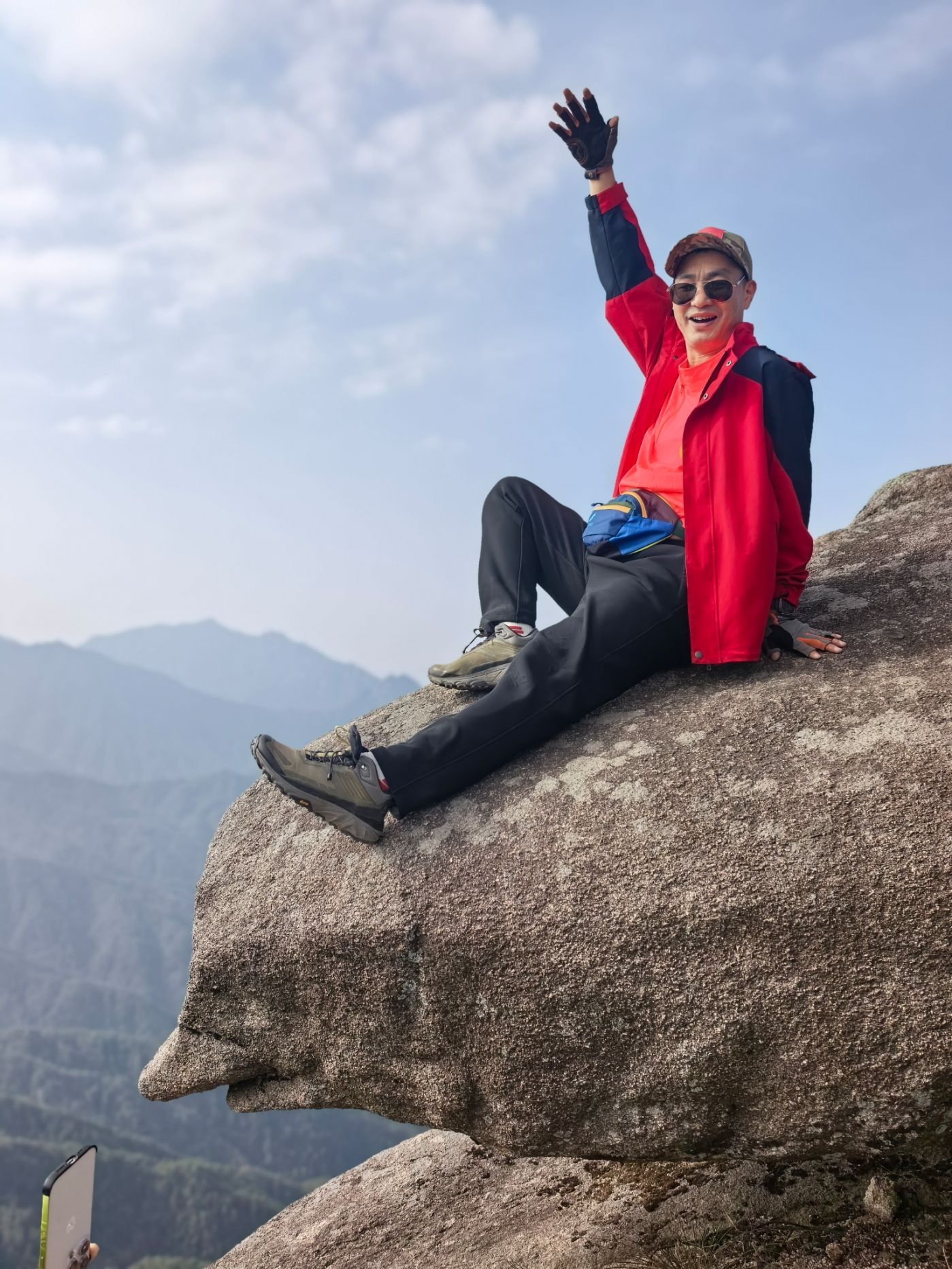 天门脊上瞰群岗。朔风狂,志犹坚。黄茅尖顶,云岚共徜徉。莫道陡险行途苦,千嶂过,尽诗章。