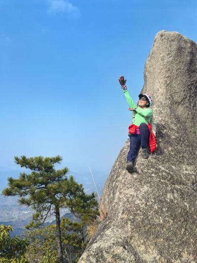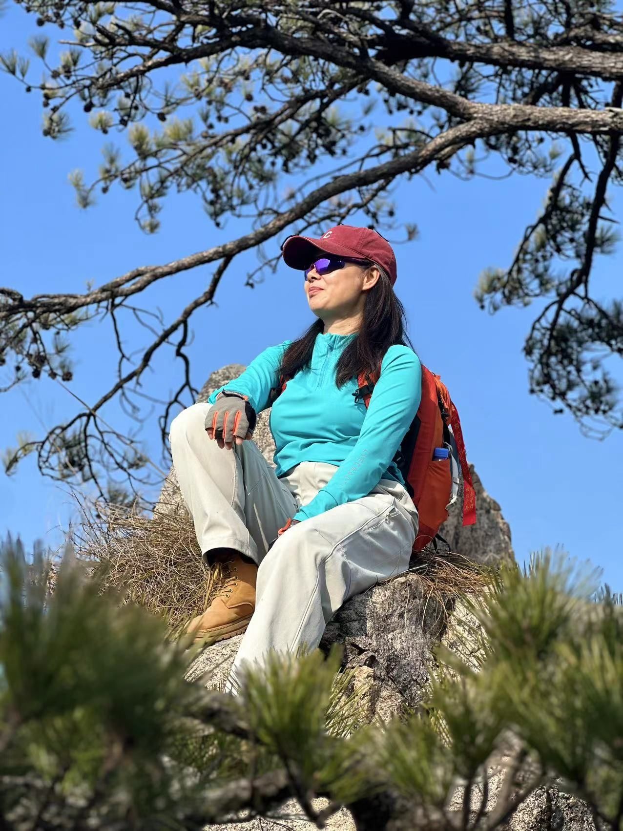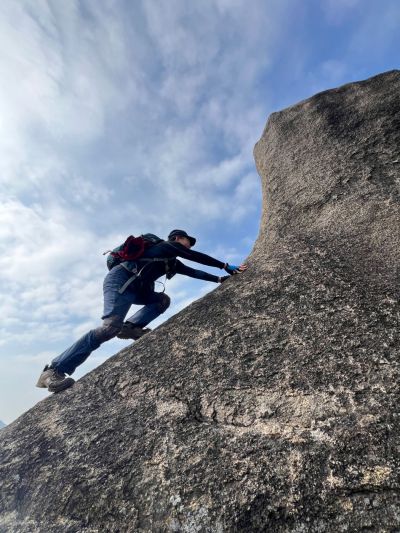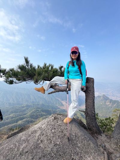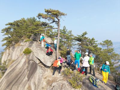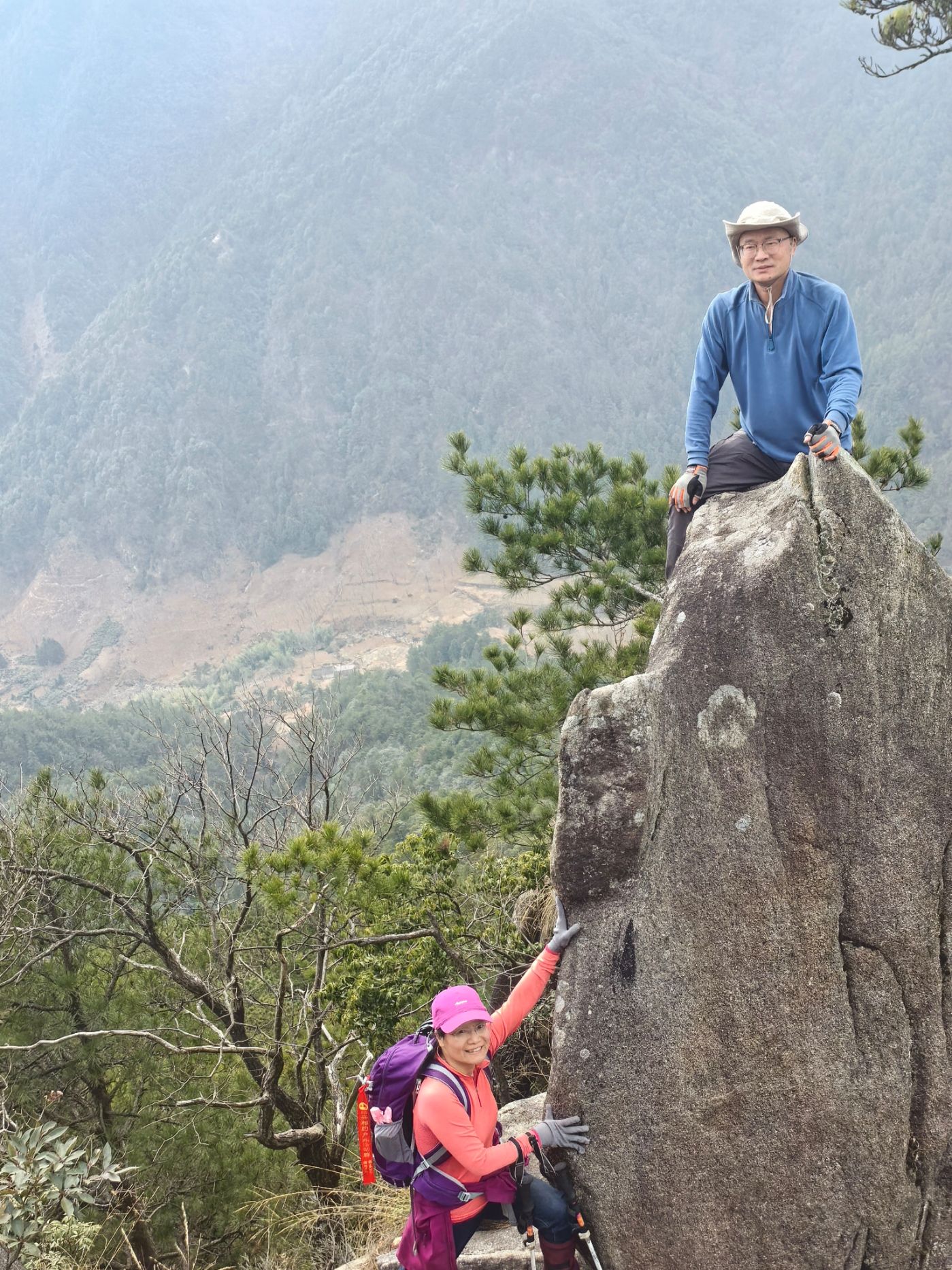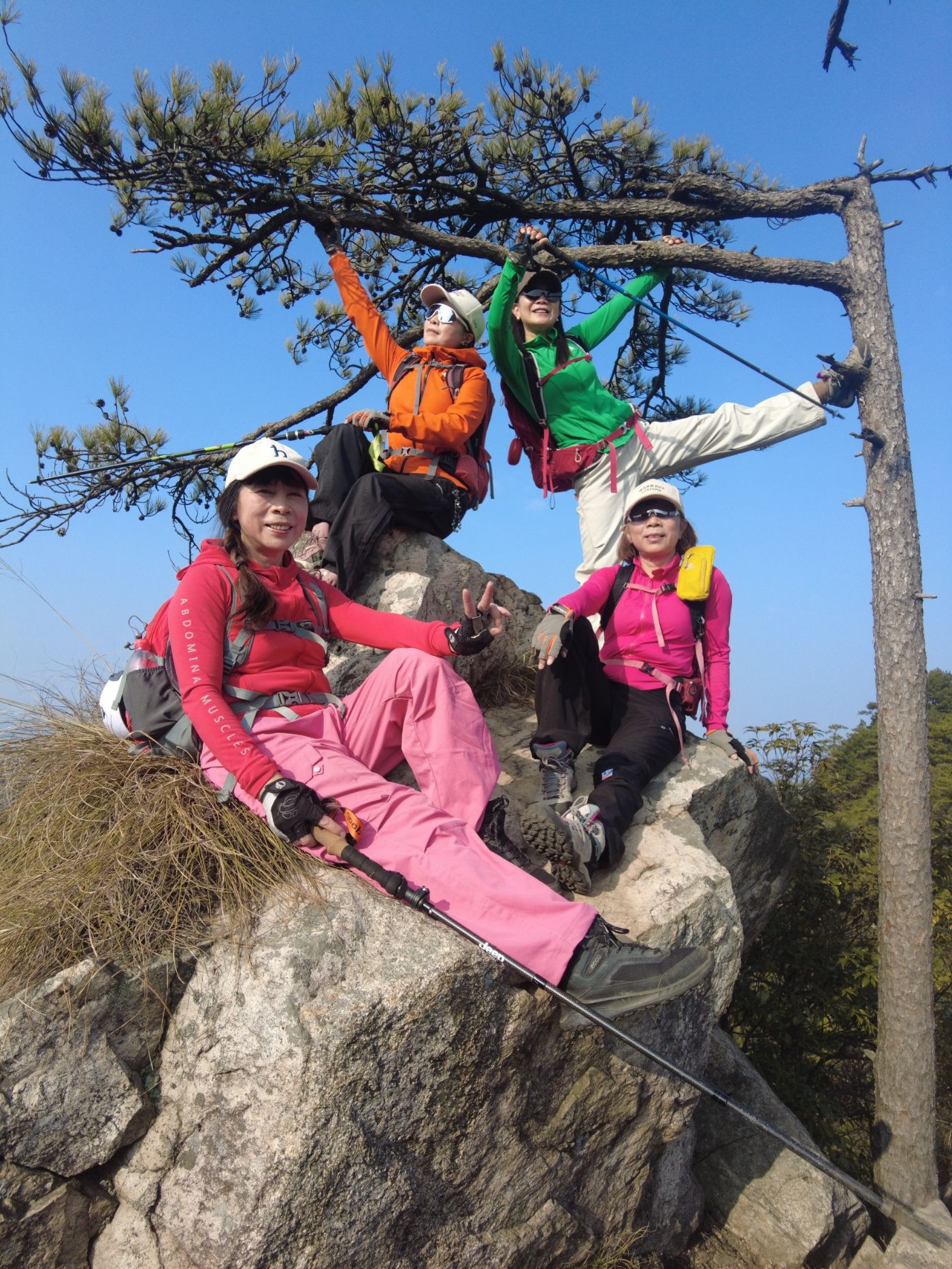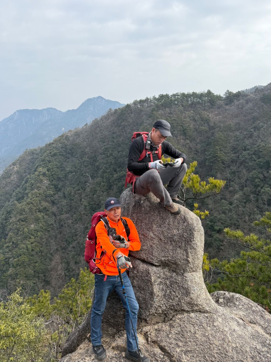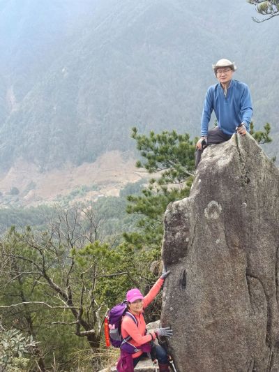 天门脊上瞰群岗。朔风狂,志犹坚。黄茅尖顶,云岚共徜徉。莫道陡险行途苦,千嶂过,尽诗章。