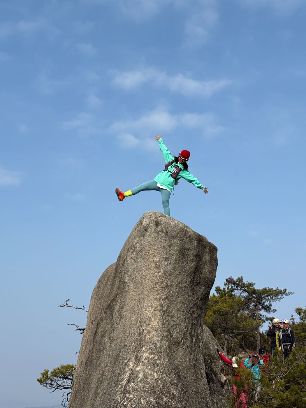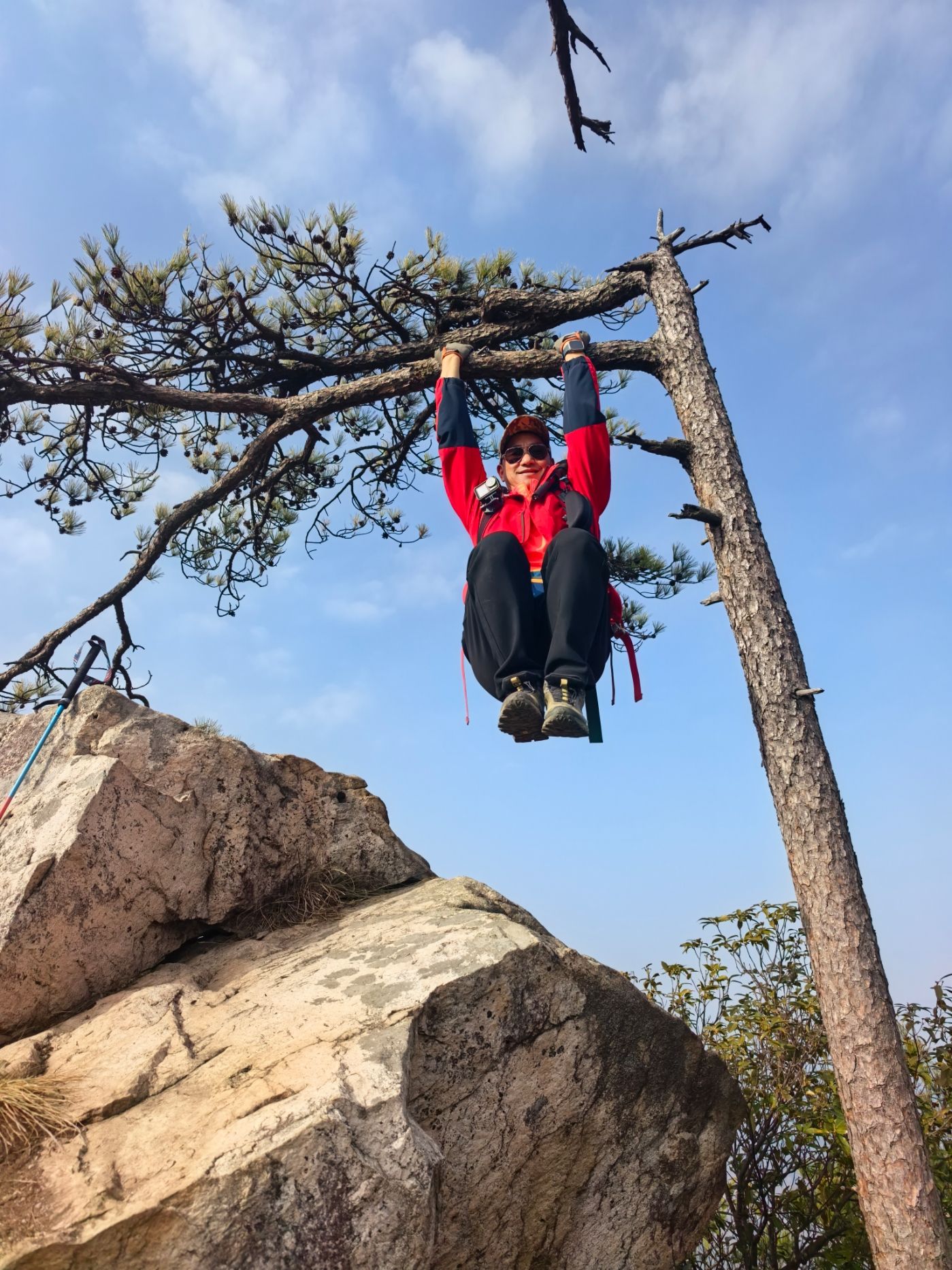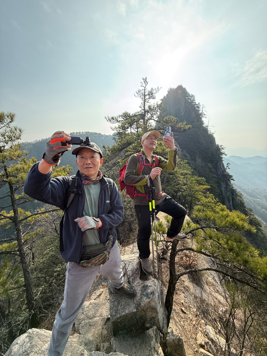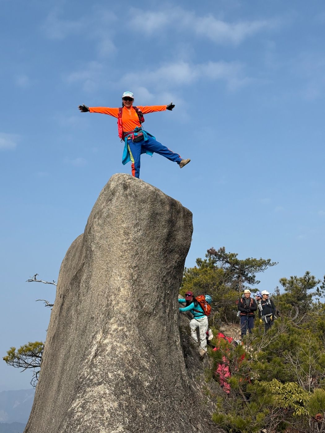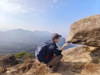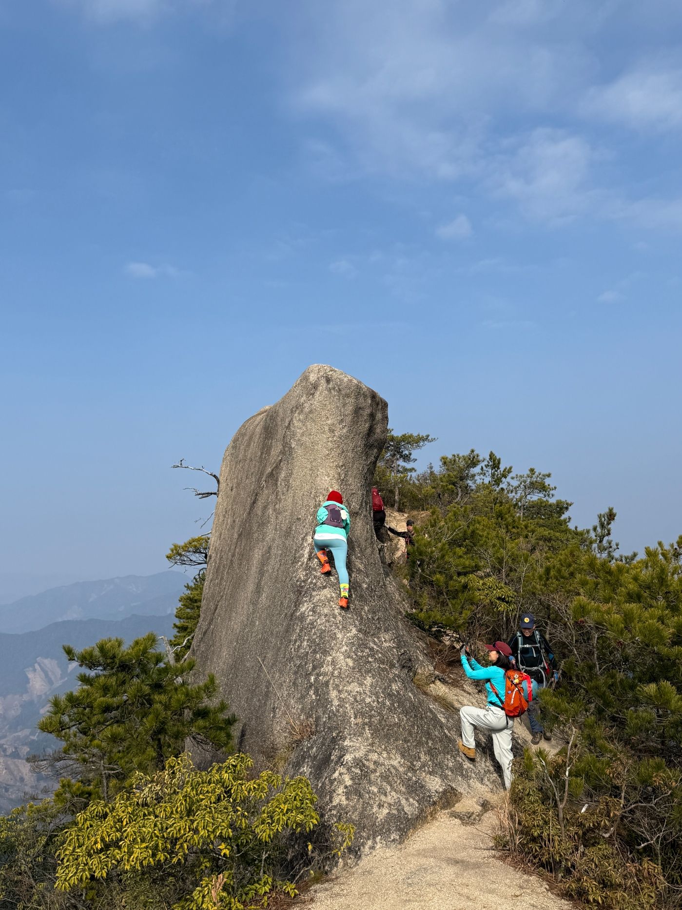 天门脊上瞰群岗。朔风狂,志犹坚。黄茅尖顶,云岚共徜徉。莫道陡险行途苦,千嶂过,尽诗章。