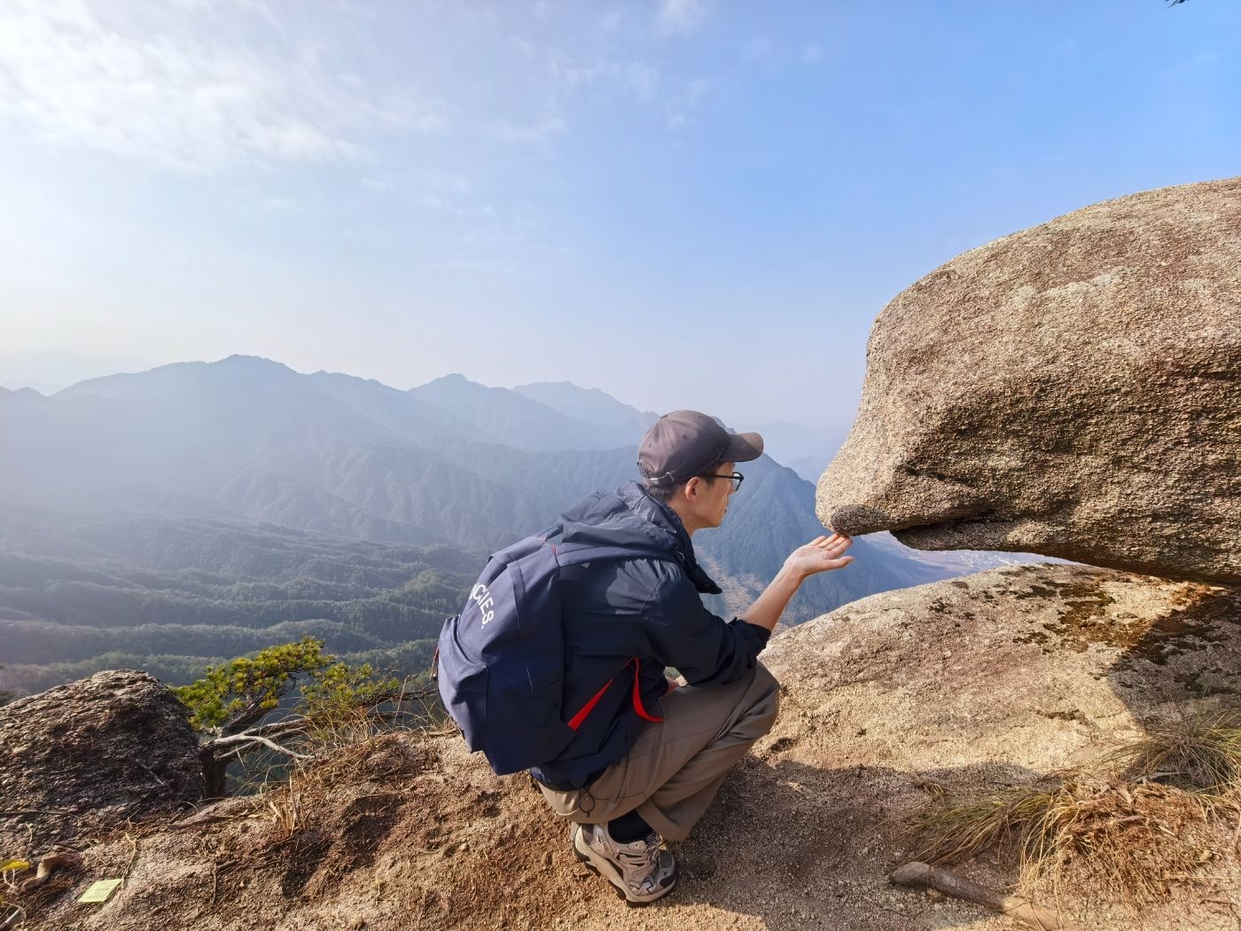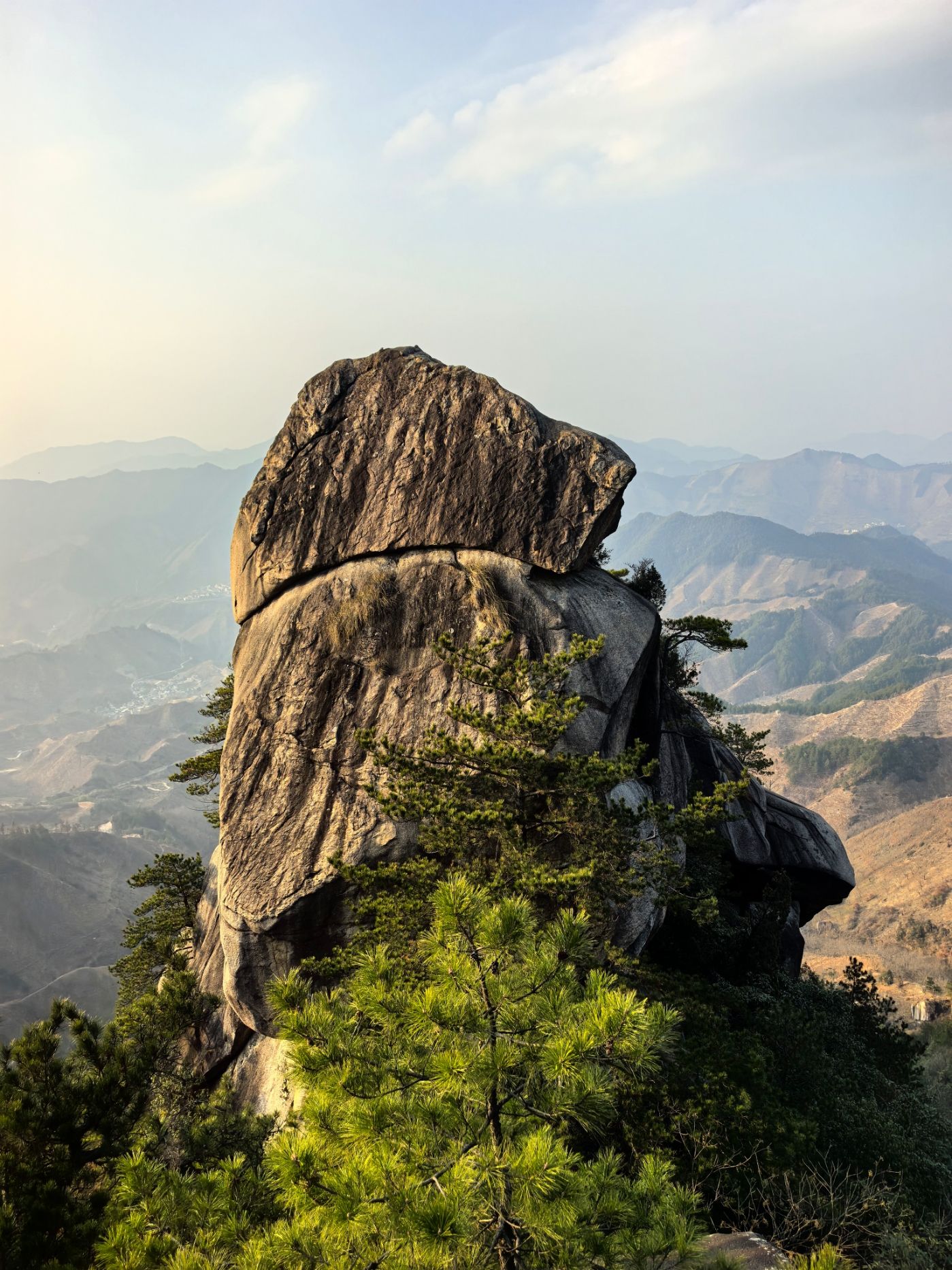 九龙戏珠位于安徽绩溪县家朋乡方家村境内,海拔1277米,顶平旷,中凸起一圆丘若珠,周边数条山脊恍如游龙来会,故名。九龙戏珠山势陡峭,惊险雄奇,风景绝佳,尤以怪石(“猪婆背”、“海豚石”、“野马石”、“仙人坐~望夫崖”、“月亮船”、“擎天柱”等)、奇松、绝壁、云海闻名,山巅上一组巨石群是九龙戏珠的精华魅力所在。一道道山脊幻化成一条条巨龙,栩栩如生,巧夺天工,或盘踞、或卧首、或潜龙升天,千奇百怪,动人心魄,令人震撼。攀绝顶,登高揽胜,心旷神怡。天门脊上各种造型奇特的巨石一一呈现,怪松点缀,其间别有一番洞天。