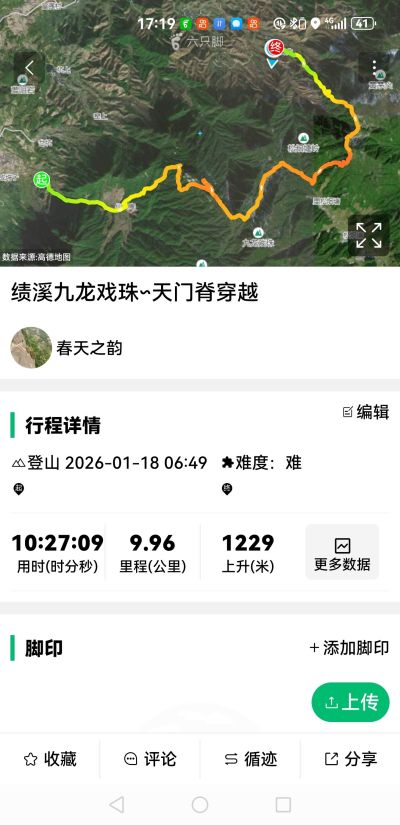 此线路长度10公里,用时10小时,难度2.5星,强度3星,风景5星。本次线路由相约户外一行35人精彩出征。